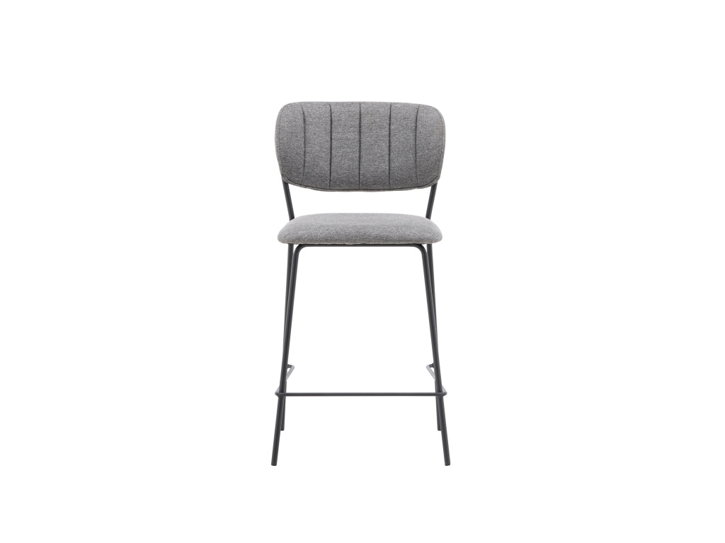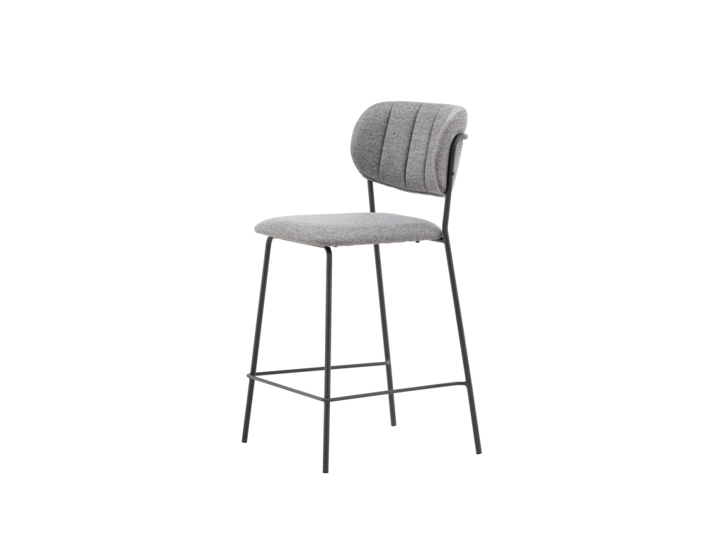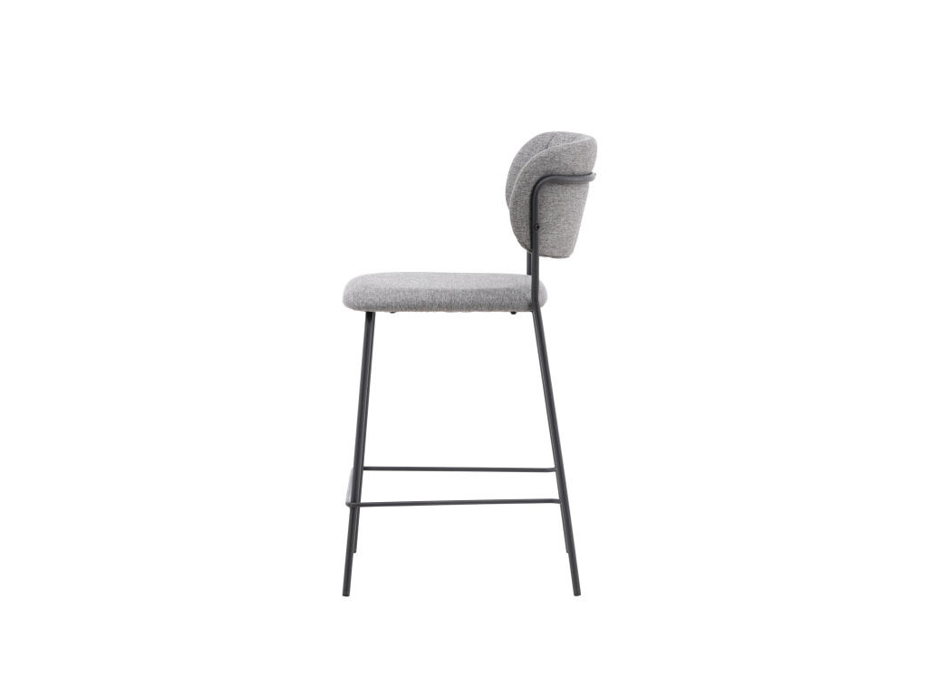 Zařiďte srdce domova moderním, pohodlným a nadčasovým dojmem s poutavou barovou židlí ze série Bell ve stylovém designu! Tato barová židle má plně elegantní design s mírně zaobleným opěradlem a sedákem z šedé polyesterové látky se stylovými ozdobnými prošíváními a úzkými nohami židle z černé oceli s integrovanou opěrkou nohou - zaručeně pěkné a pohodlné. Vytvořte si příjemný a příjemný vzhled kolem barového stolu a užijte si společně skvělá jídla!