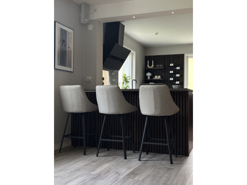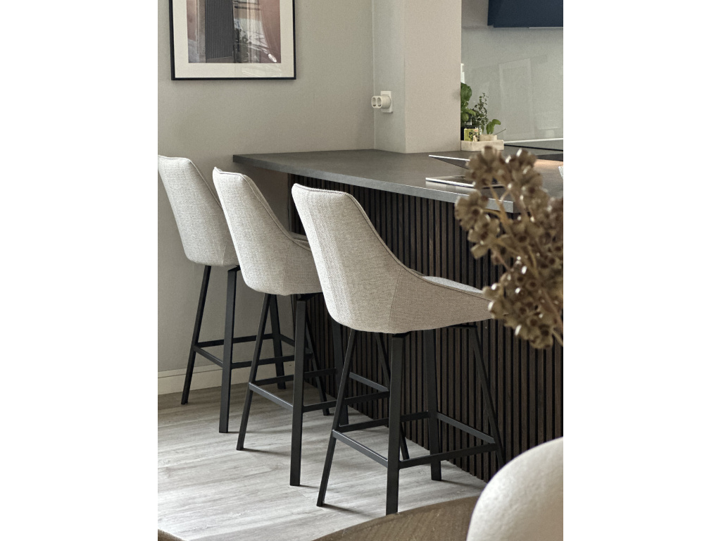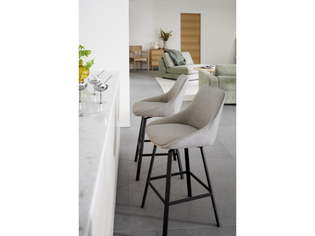 Barová židle Alison v béžové látce má otočnou základnu o 360 stupňů. Tvarovaný, polstrovaný sedák spolu s opěradlem činí barovou židli pohodlnou a příjemnou k sezení. Barová židle Alison s kovovou základnou se snadno sladí s vaším kuchyňským ostrůvkem nebo barovým stolem. Dřevo uvnitř sedáku je vyrobeno ze 100% dřeva s certifikací FSC®. Prodává se pouze v balení po 2 kusech.