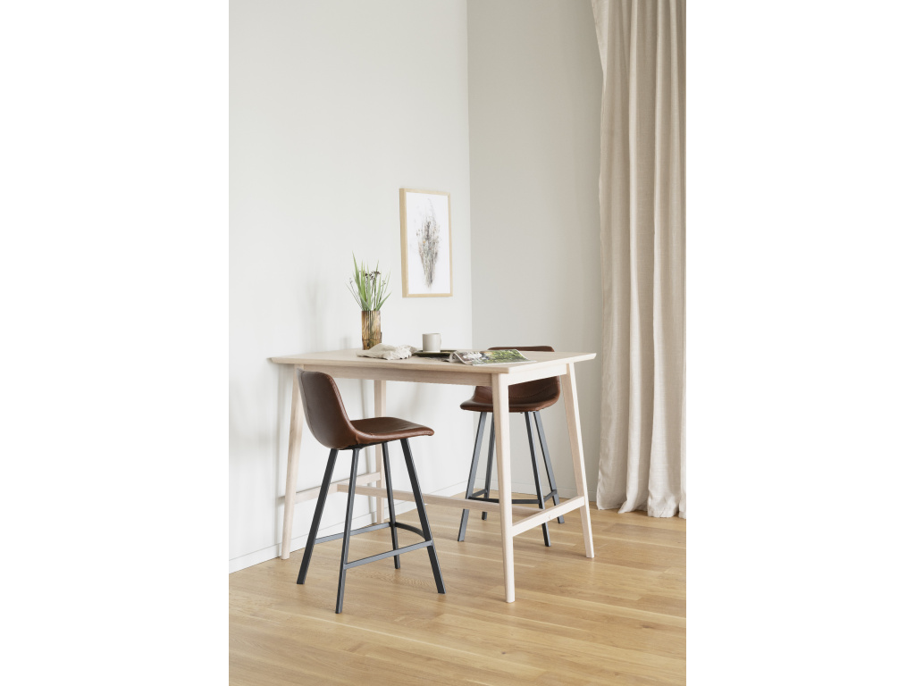 Auburn Bar Chair od Rowico přináší moderní design do vaší kuchyně či baru. Tato židle je vybavena sedákem z kvalitní hnědé PU kůže, která nejen vypadá skvěle, ale také se snadno udržuje. Dekorativní prošívání dodává židli jemný nádech luxusu, zatímco černé kovové nohy s práškovou úpravou zajišťují stabilitu a dlouhou životnost. Díky pohodlným rozměrům sedáku a optimální výšce je tato židle perfektním společníkem pro posezení u kuchyňského ostrůvku či barového pultu.