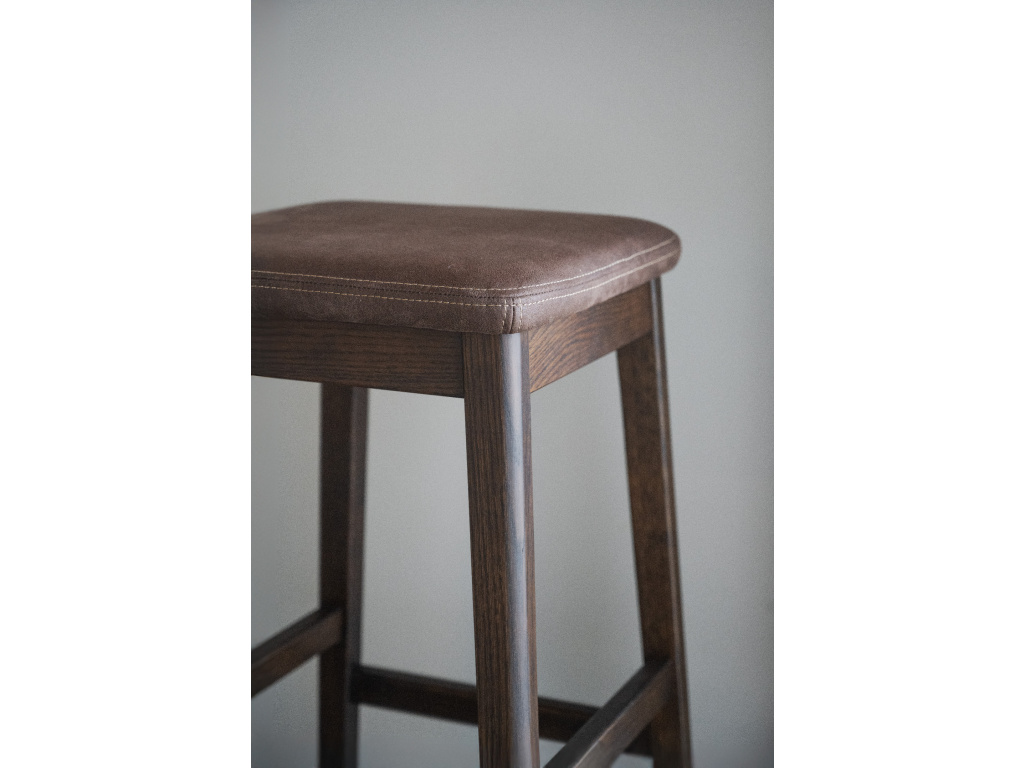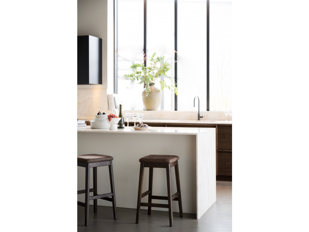 Barová židle Livermore kombinuje stylový design s pohodlím. Díky svým rovným liniím z masivního hnědého dubu s certifikací FSC® a elegantnímu čalouněnému sedáku z odolné kožené textilie je moderní i nadčasová zároveň. Ideální pro kuchyňský ostrůvek nebo barový stůl. Prodává se pouze v balení po 2 kusech.
