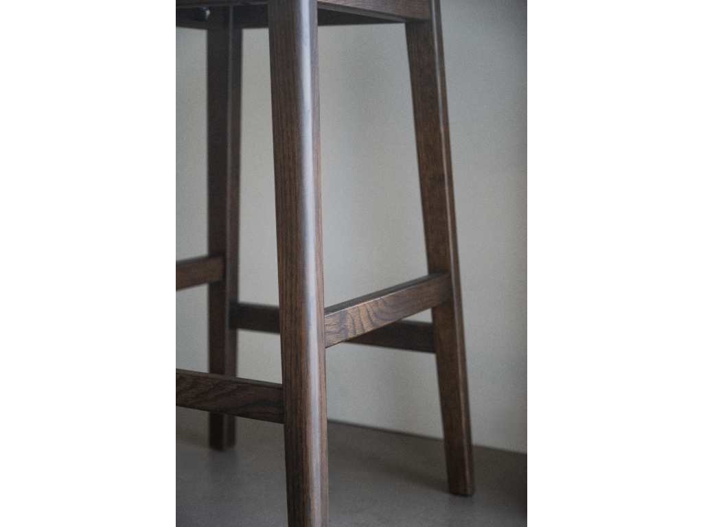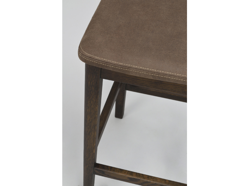 Rám z masivního dubu, sedák z pěny, čalouněný kombinací kůže a textilu.