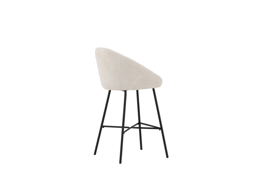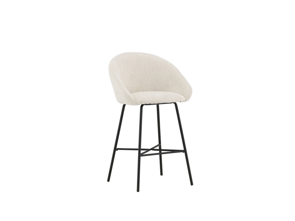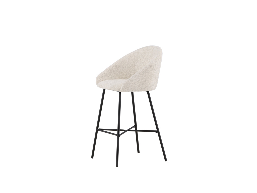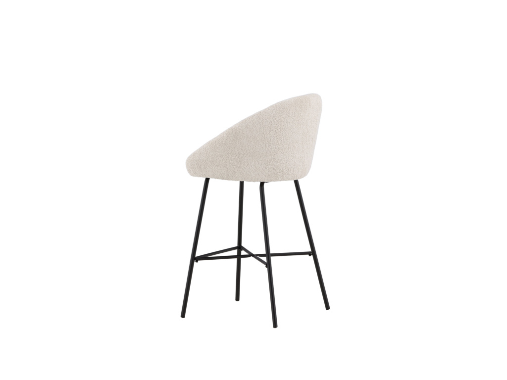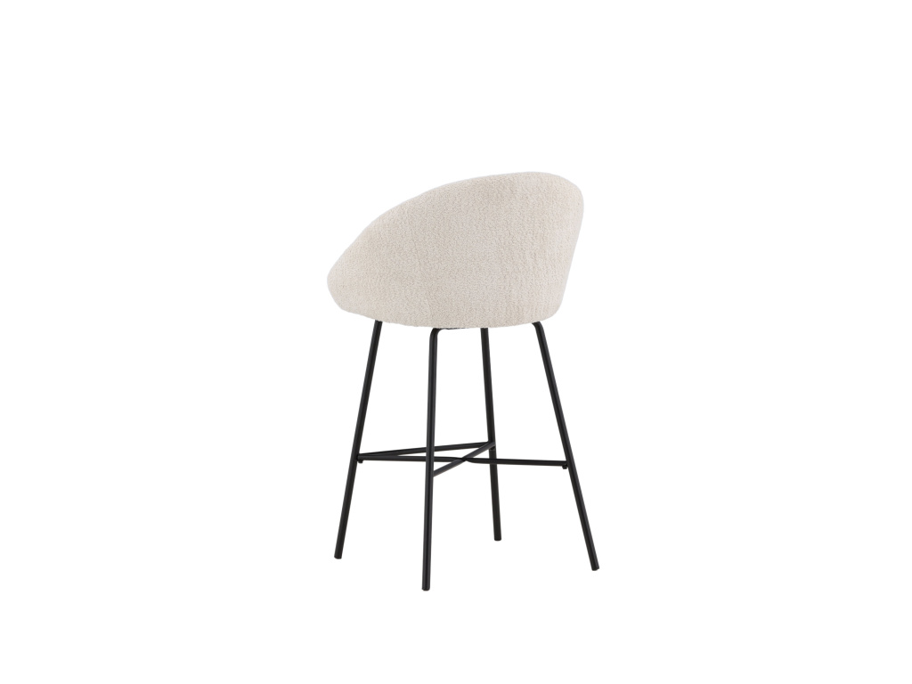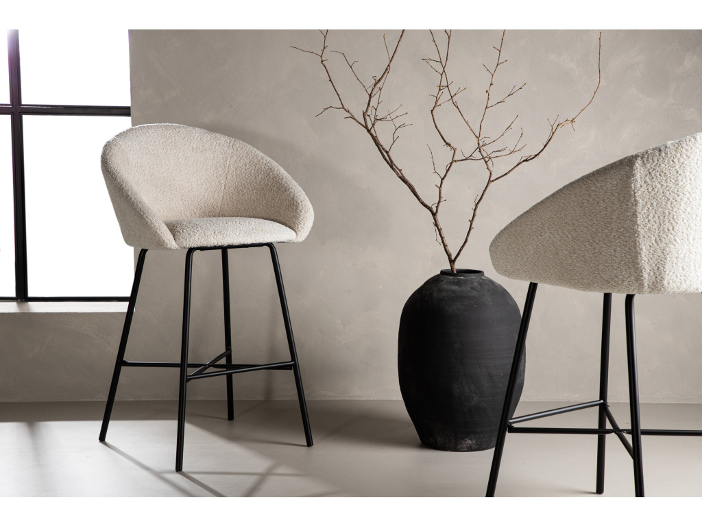 S měkkým kulatým sedákem z polstrované bílé plyšové látky a integrovanou podnožkou z černé oceli je tato barová židle stejně stylová, jako je pohodlná na sezení.