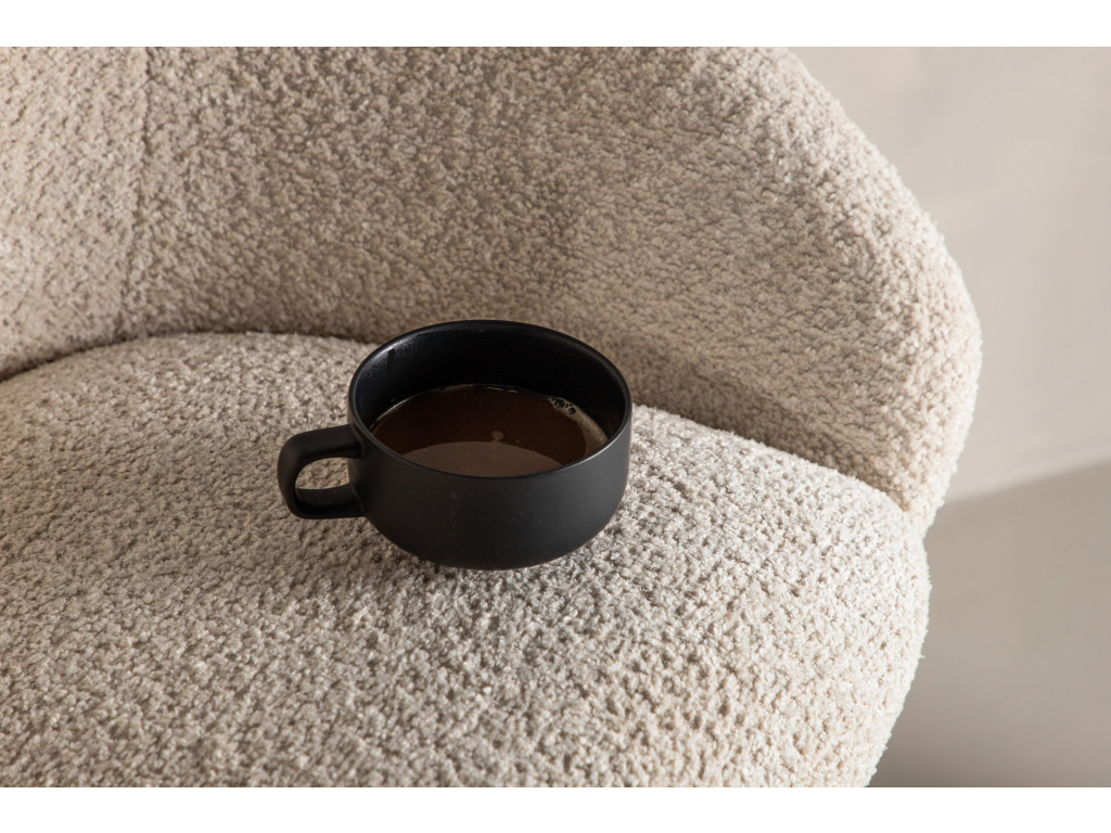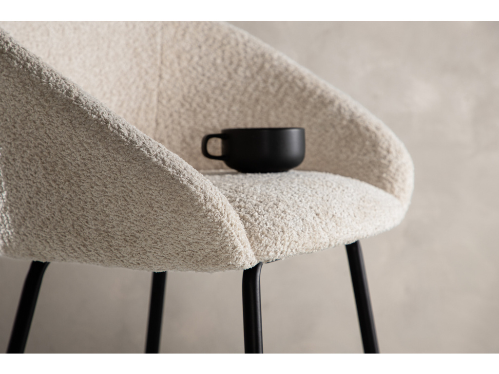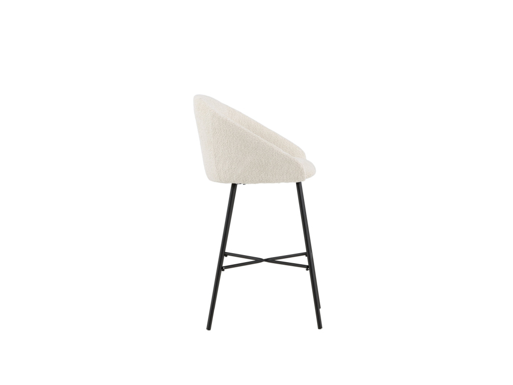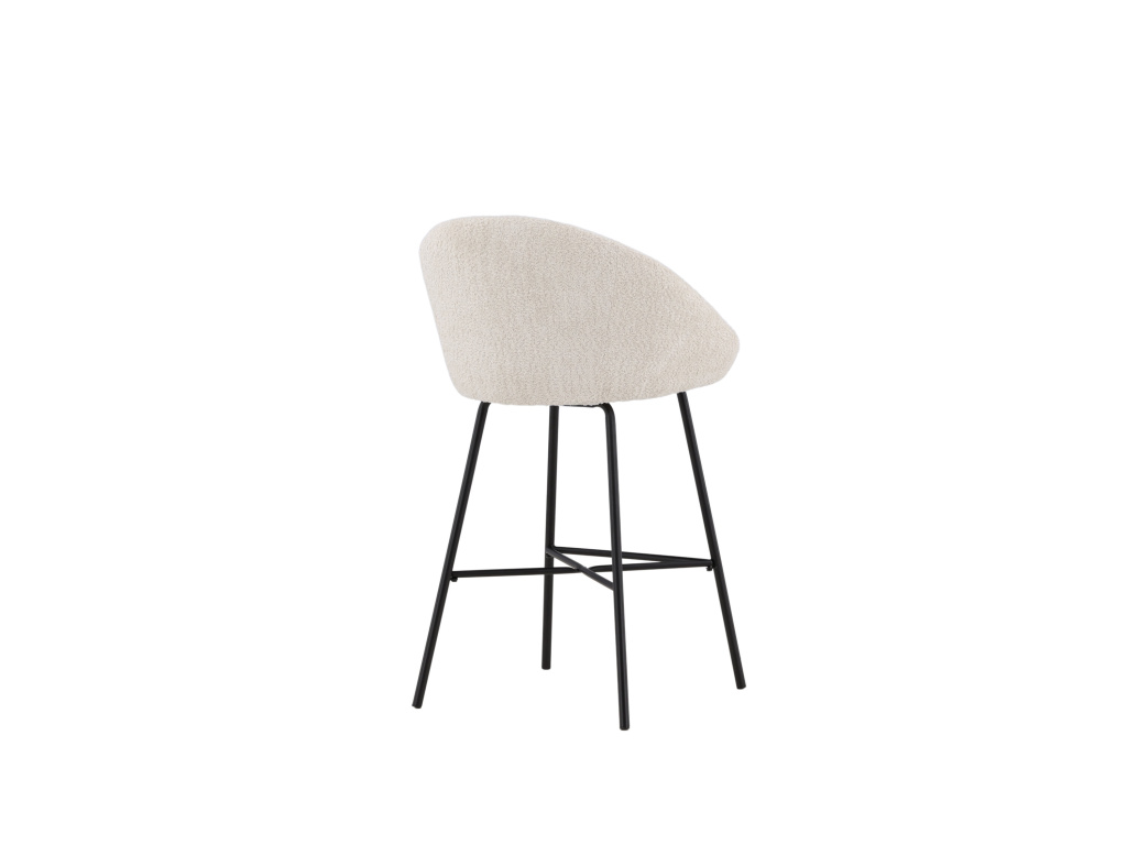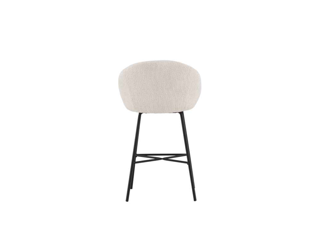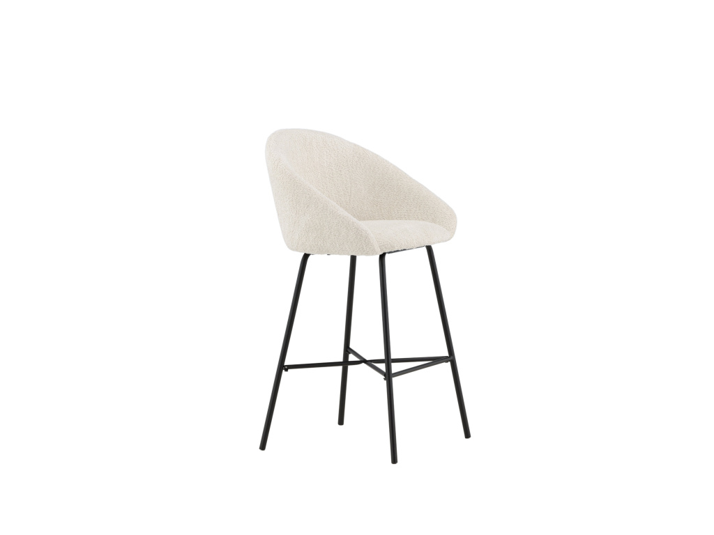 S měkkým kulatým sedákem z polstrované bílé plyšové látky a integrovanou podnožkou z černé oceli je tato barová židle stejně stylová, jako je pohodlná na sezení.
