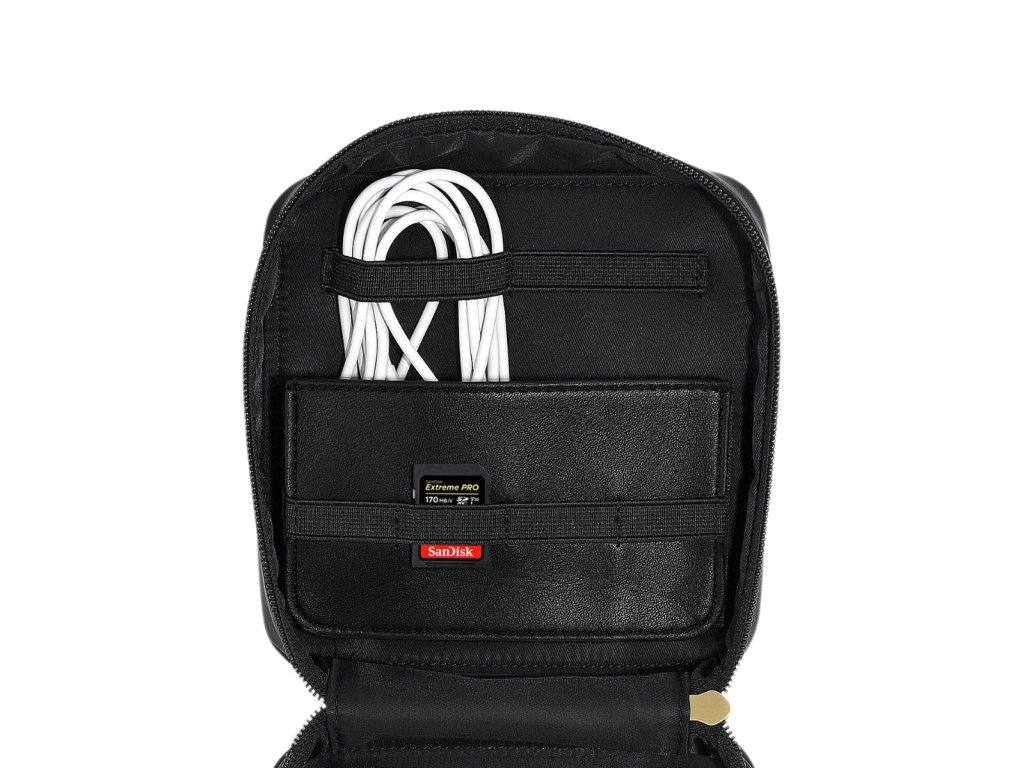 Uvnitř máte na jedné straně síťovanou kapsu a na druhé elastická poutka, takže je ideální pro bezpečné uložení kabelů, nabíječek a špuntů do uší a jejich snadné nalezení.