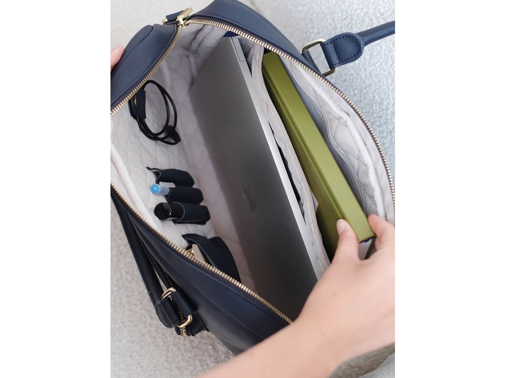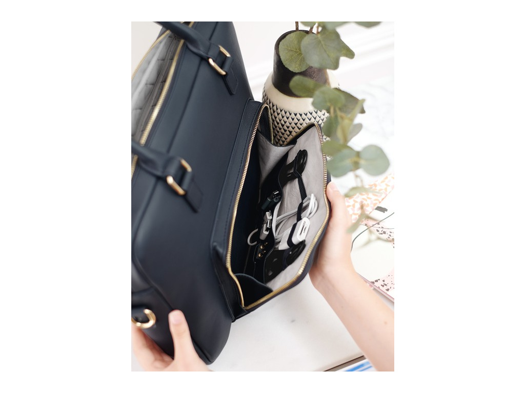 Její design je nejen stylový, ale také praktický. Přední kapsa má integrovaný systém na ukládání kabelů, takže budete mít všechno hezky pohromadě a uspořádané. A nezapomeňte na menší kapsu se zipem na zadní straně – tam se vejde všechno, co chcete mít bezpečně schované.