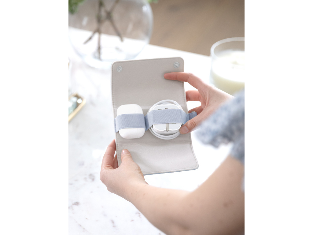 Díky 2 elastickým úložným páskům vám kompaktní organizér na kabely pomůže udržet vaše technologické příslušenství a kabely v pořádku i během cestování.