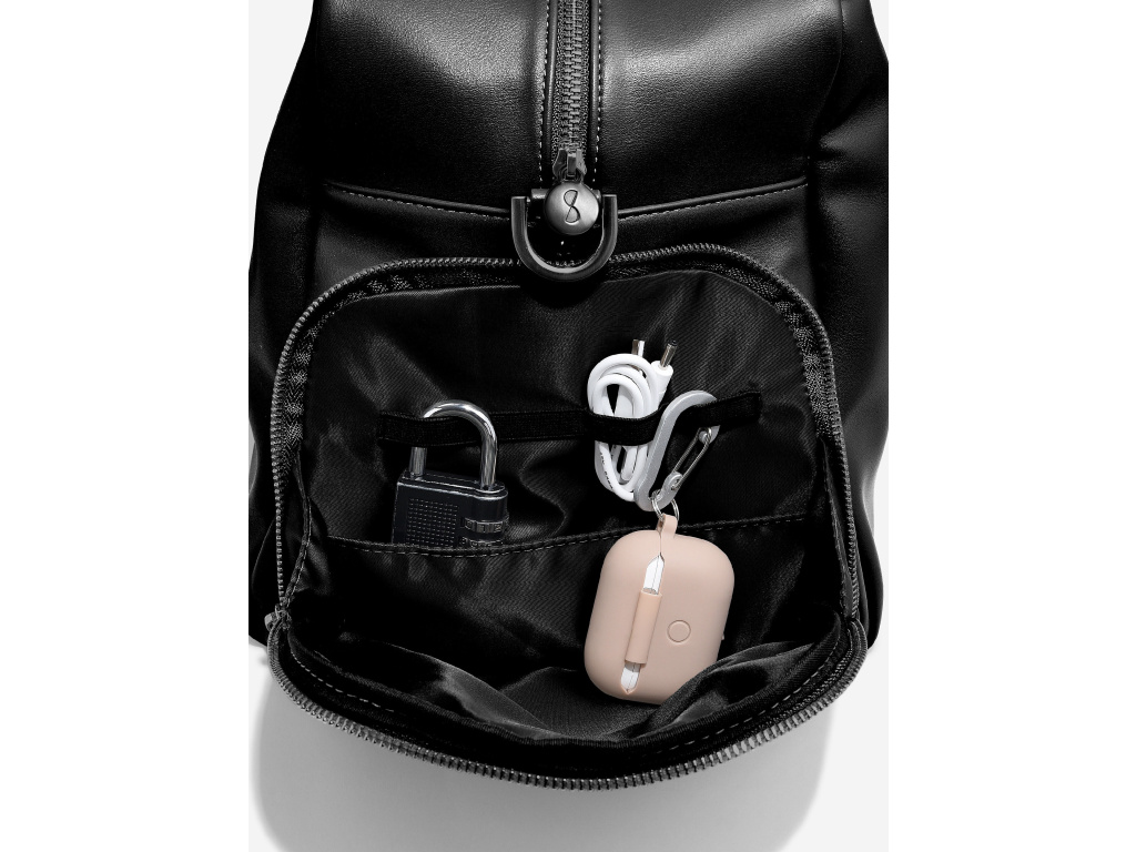 Vnější kapsy obsahují vestavěný kabel (elastická poutka) pro nabíječku a sluchátka.