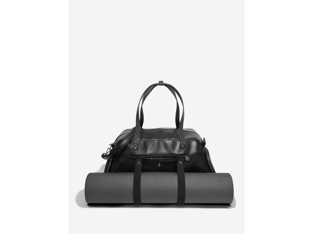 Přední kapsa na zip má elastická poutka, do kterých lze uložit srolovanou podložku na jógu.