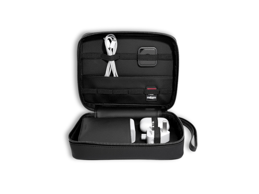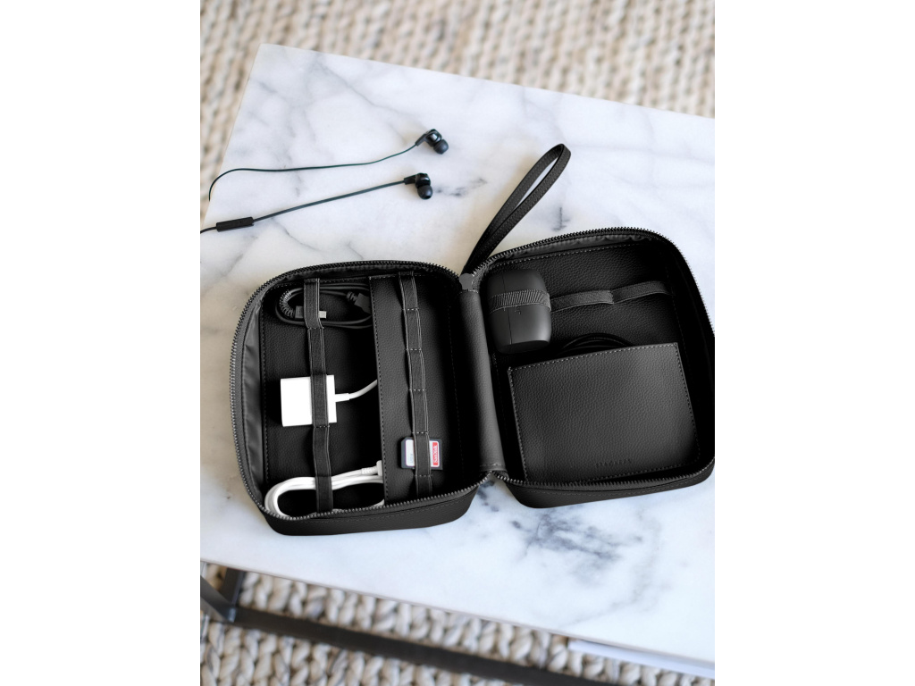 Stackers Cable Tidy má několik vnitřních přihrádek určených pro vaše kabely, paměťové karty, nabíječky a další. sbohem kabelový chaos.
