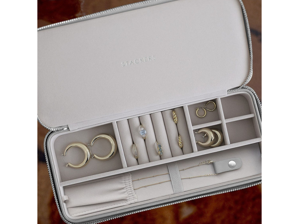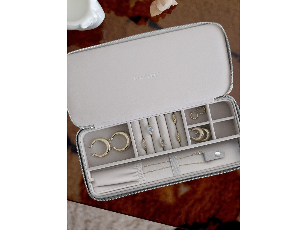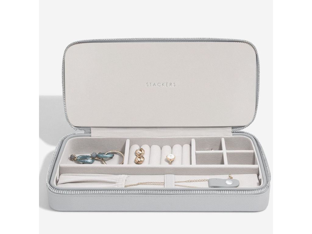 Elegantní cestovní šperkovnice Stackers Sleek Necklace Zipped Travel Jewellery Box | šedá