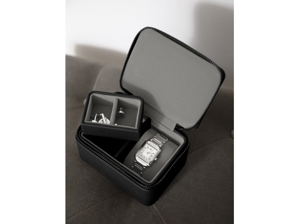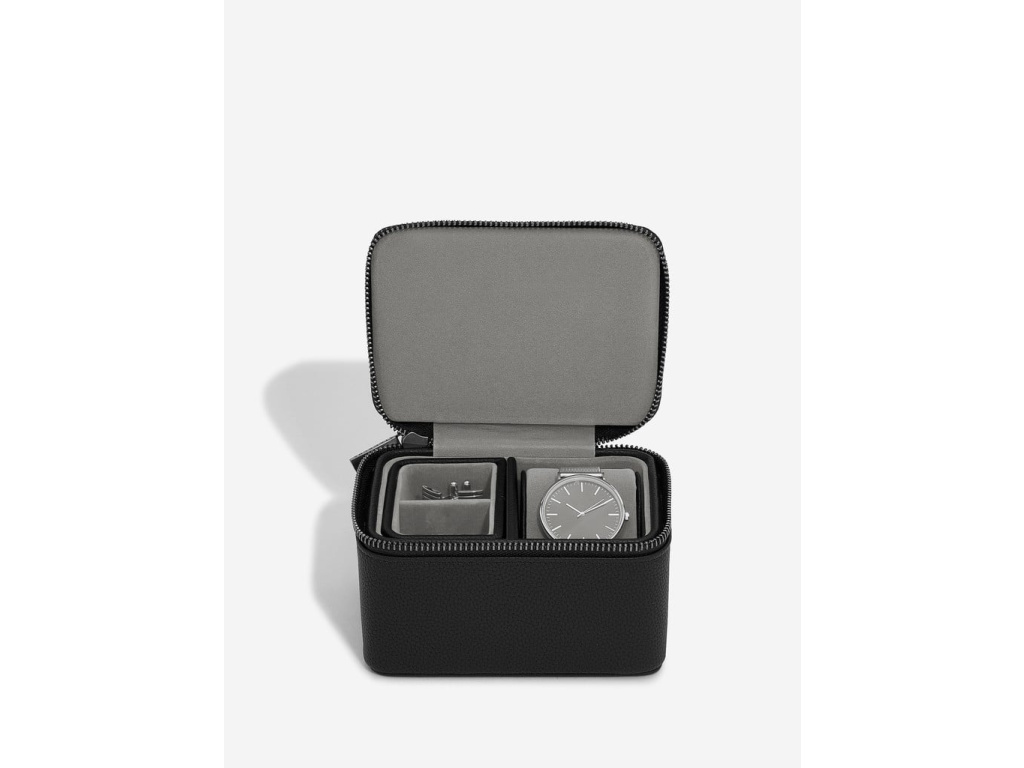Pánská cestovní šperkovnice na hodinky Stackers Pebble Black Watch & Cufflink Box Black