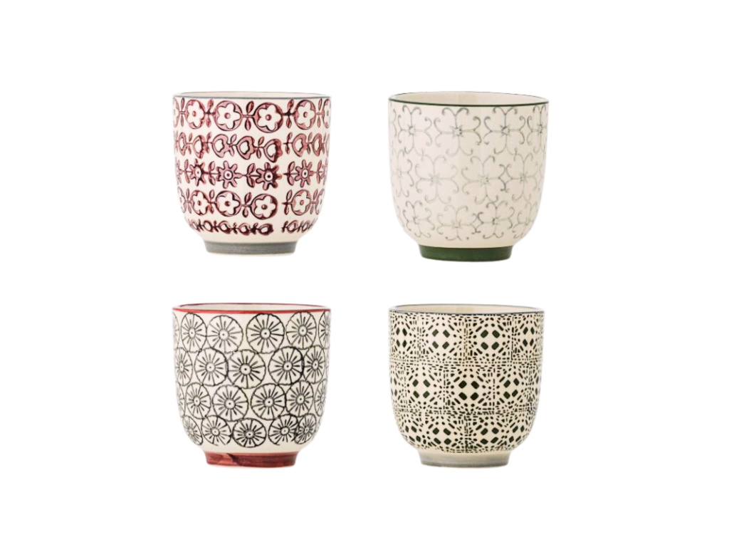 Sada kameninových hrnků Bloomingville Karine, 150 ml, 4ks | béžová, zelená