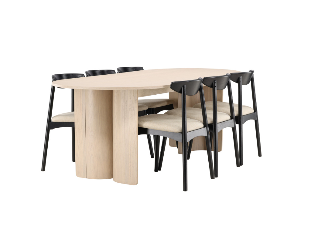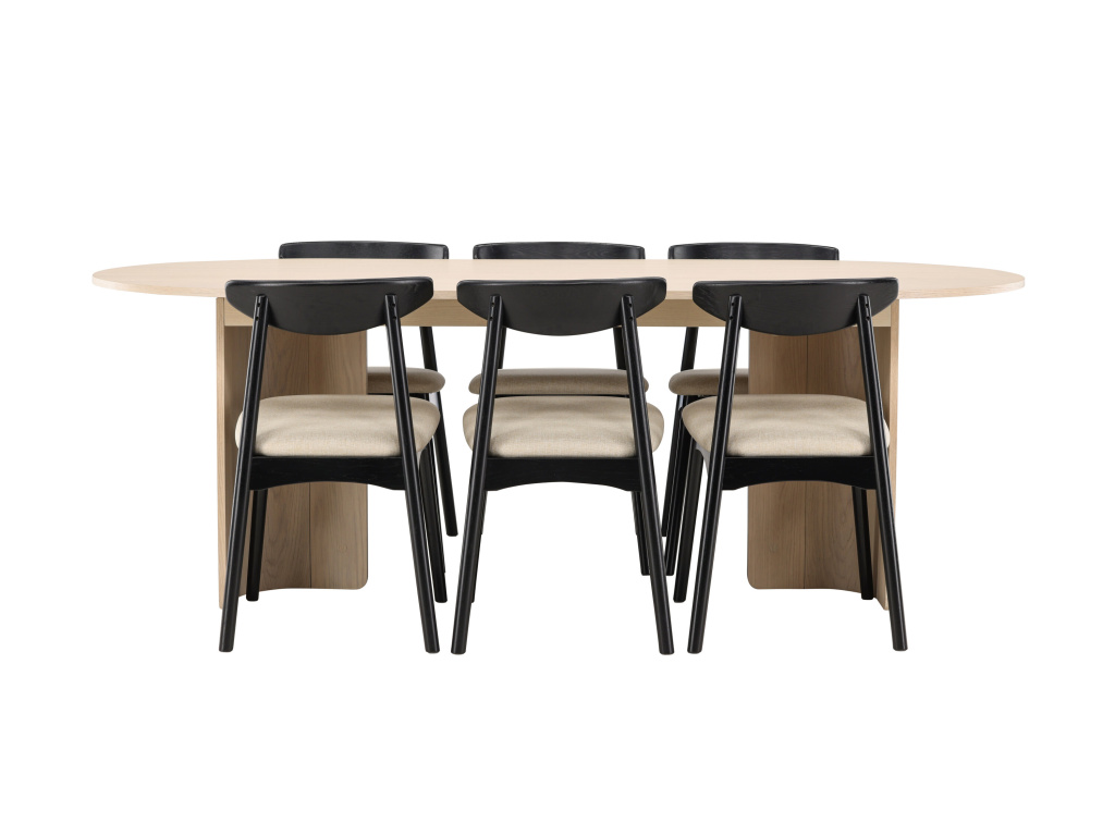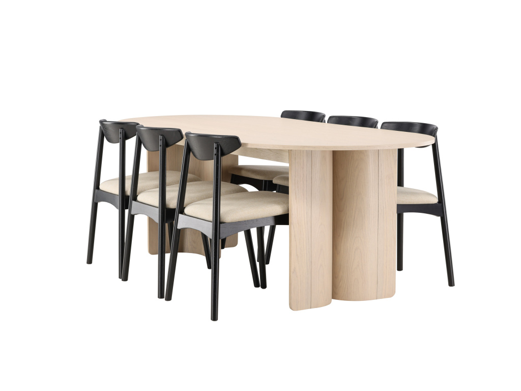 Společně tvoří vyváženou a nadčasovou jídelní sadu, ideální pro rychlé večeře ve všední dny i pro dlouhá setkání s přáteli a rodinou. Kompletní řešení pro každého, kdo chce spojit styl, pohodlí a flexibilitu v nejdůležitější místnosti domova.
