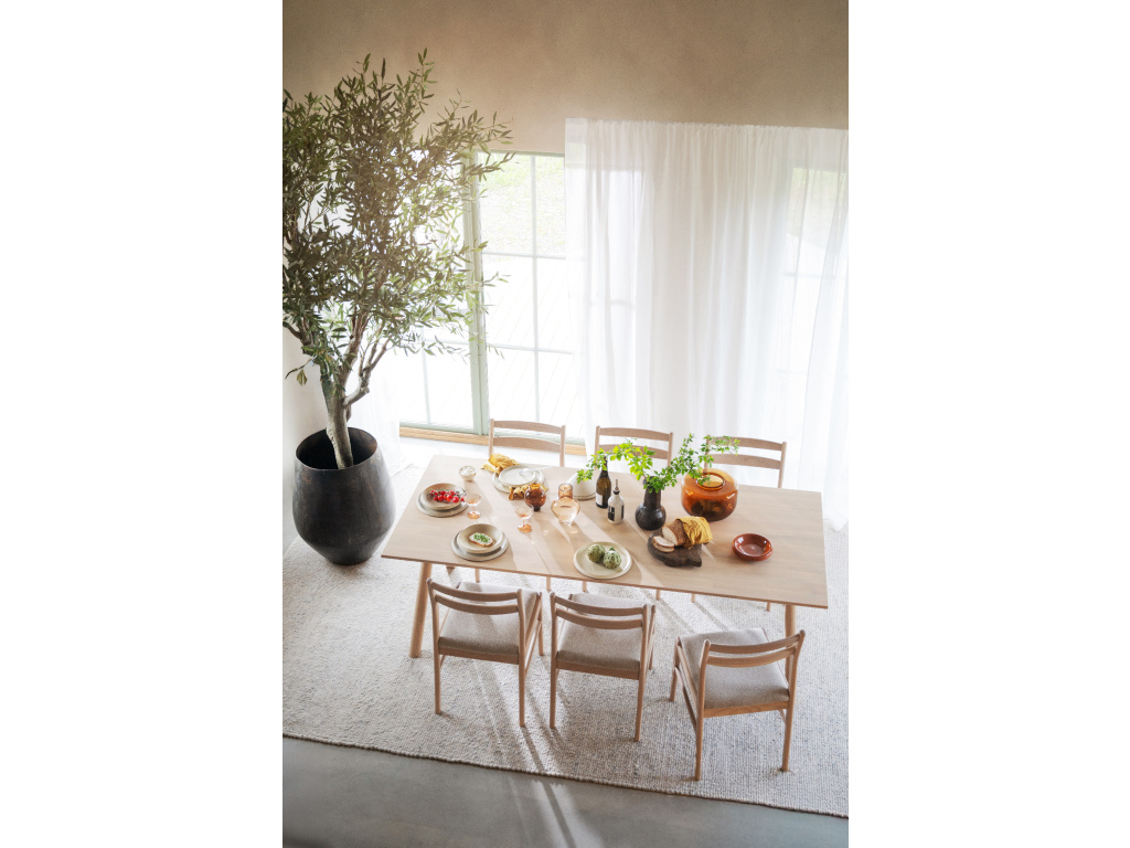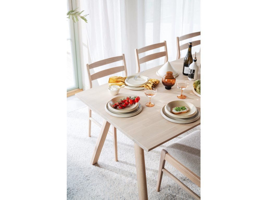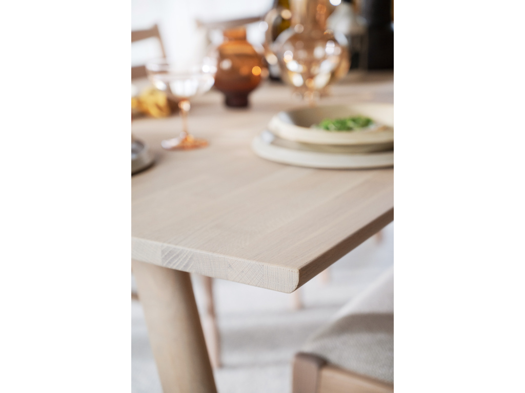 Clapperton je masivní jídelní stůl z běleného dubu s výrazným designem a vysokou řemeslnou hodnotou. Vyrobeno v Evropě s velkou péčí o estetiku i udržitelnost. Dřevo s certifikací FSC® je spojováno prsty pro výrazný výraz a charakter a ošetřeno olejem Rubio, který zdůrazňuje přirozenou texturu a jedinečný tón dřeva. Jeho tvar kombinuje rovné a zakřivené linie pro jemný, ale strukturovaný vzhled. Nohy zahnuté ven se setkávají v sochařském spoji a tvoří jeden plynulý kus, který decentně pozvedá celý design.…