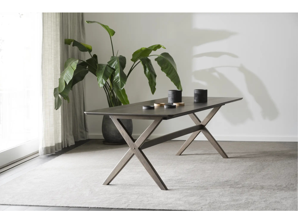 Jídelní stůl Calverton 230 cm s unikátními stolovými nohami v dubovém masivu má vysokou designovou hodnotu.