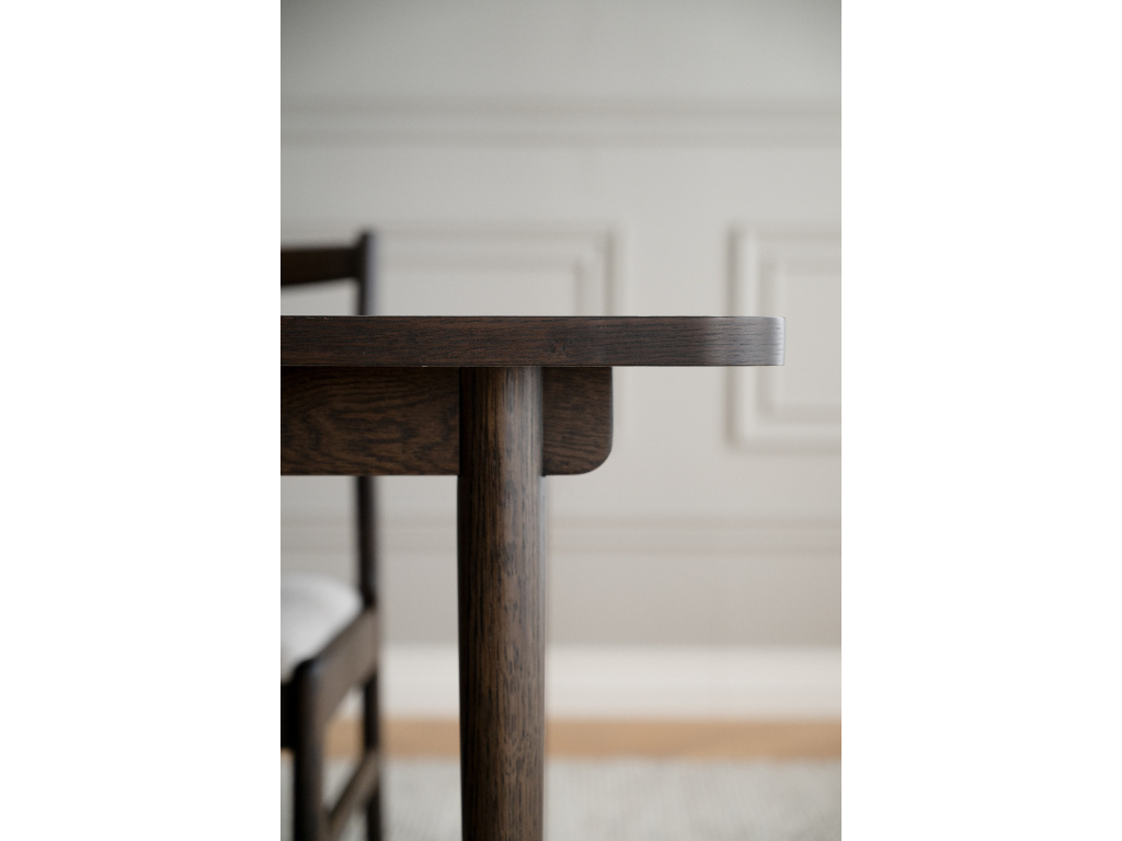 Fairmount je elegantní jídelní stůl z hnědého dubu s lehkým a vzdušným designem. Deska stolu je vyrobena z odolného vysokotlakého laminátu, díky čemuž je odolná vůči poškrábání a vlhkosti, a je ideální jak pro každodenní život, tak pro slavnostní příležitosti. Béžová barva desky stolu v kombinaci s dýhovaným dřevěným lemováním a masivními dubovými nohami umožňuje, aby se stůl bez problémů začlenil do většiny domácností. Řemeslným detailem pod stolem je jemně tvarovaná zástěra, která přesahuje nohy, což je…