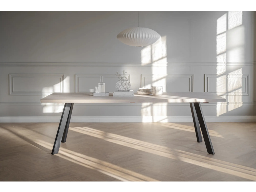 Moderní a exkluzivní jídelní stůl s dvoudílnou deskou ze 100% FSC® certifikovaného masivního dubu.