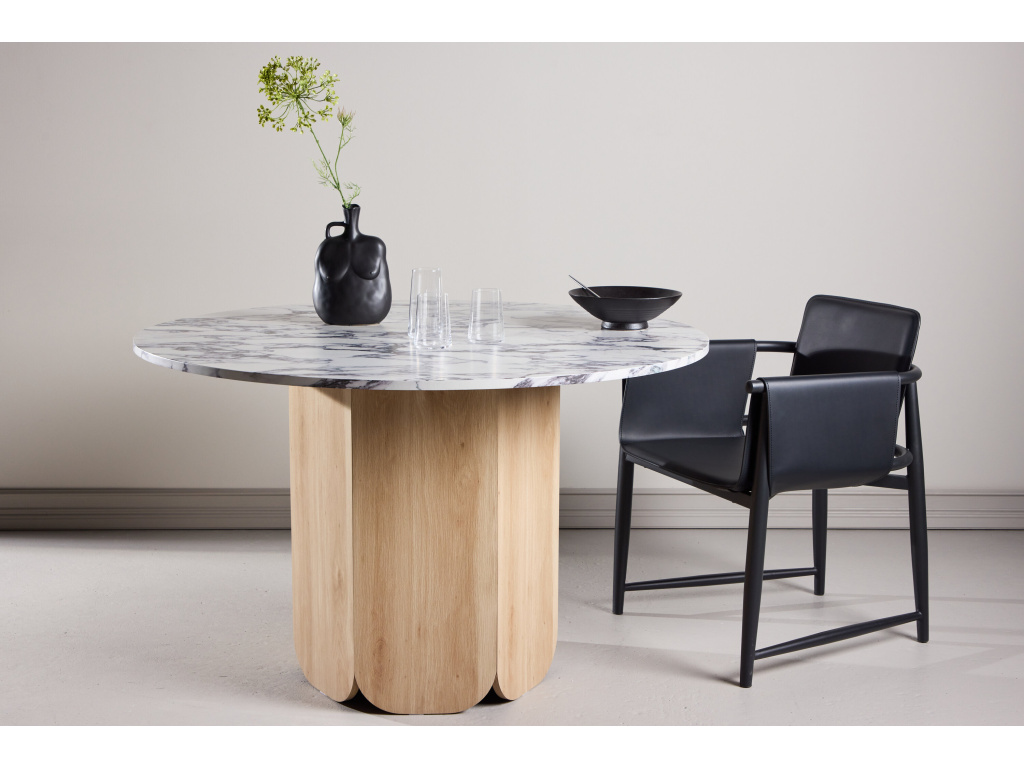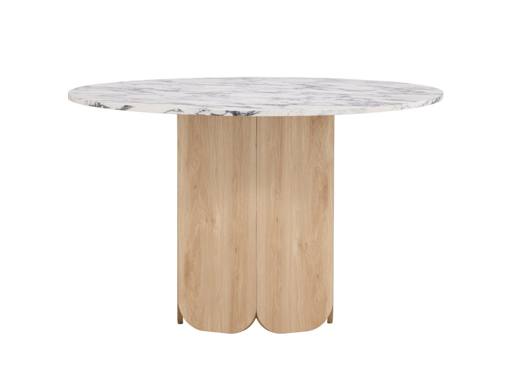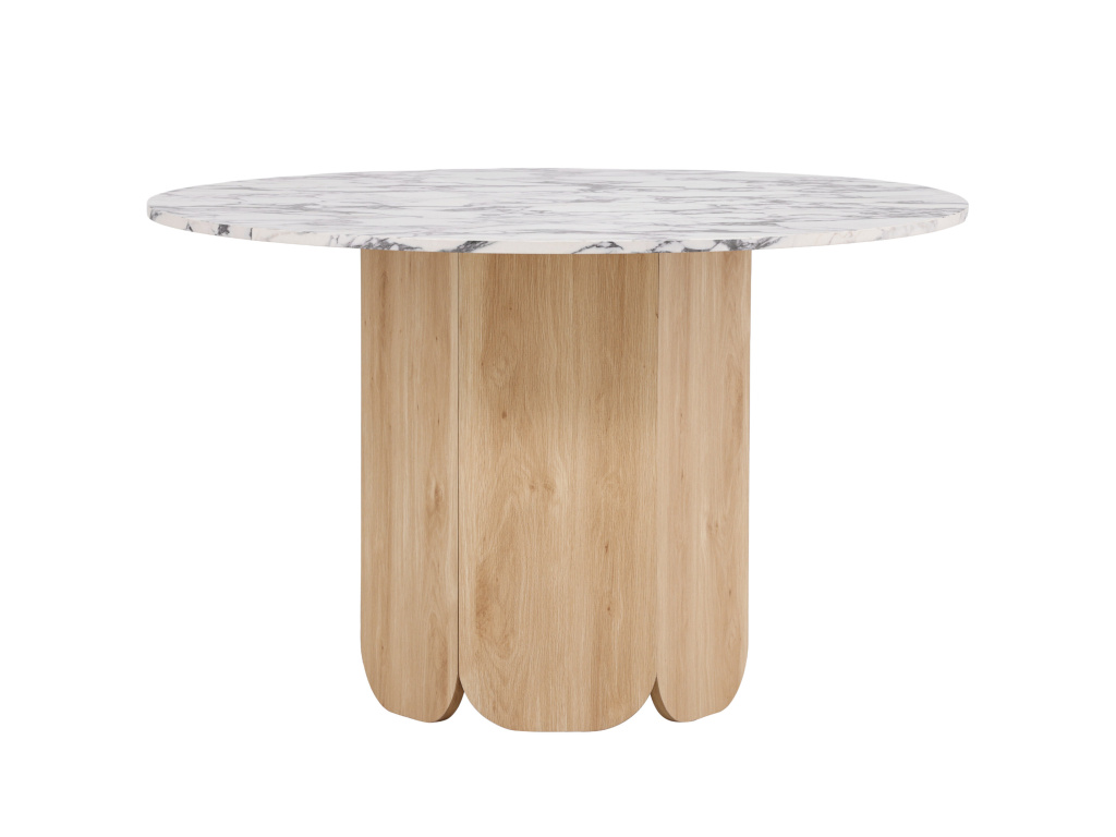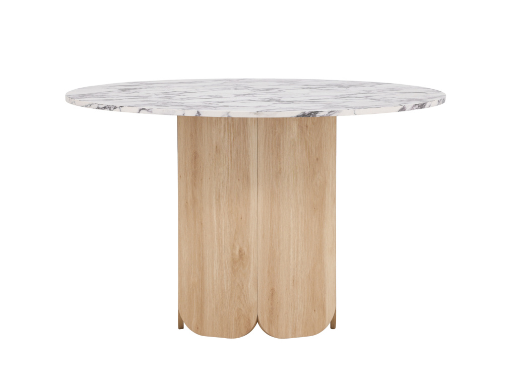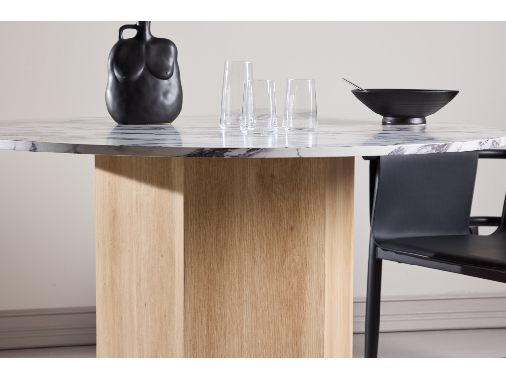 Objevte Teklu, jídelní stůl, který se odvažuje kombinovat materiály a výrazy a vytváří tak něco skutečně jedinečného. Díky charakteristické MDF základně a elegantní desce s kalacatovým vzhledem se Tekla stane vzrušujícím a jedinečným prvkem ve vašem interiéru. Kulatý tvar o průměru 120 cm je ideální pro menší jídelny, kde vytvoří příjemnou atmosféru a přirozené místo pro setkávání. Tekla se hodí jak do moderních domů, tak do kreativnějších nebo osobnějších prostor.