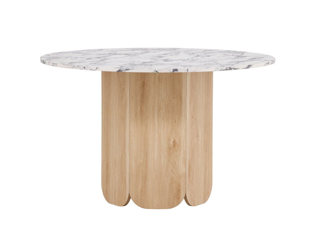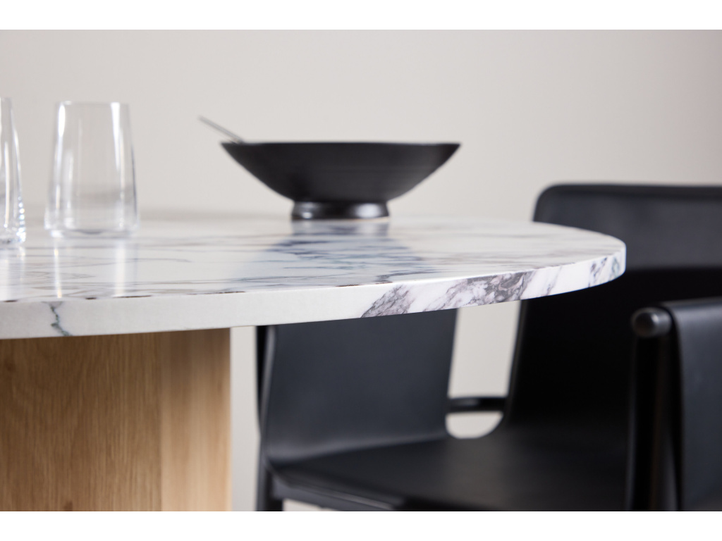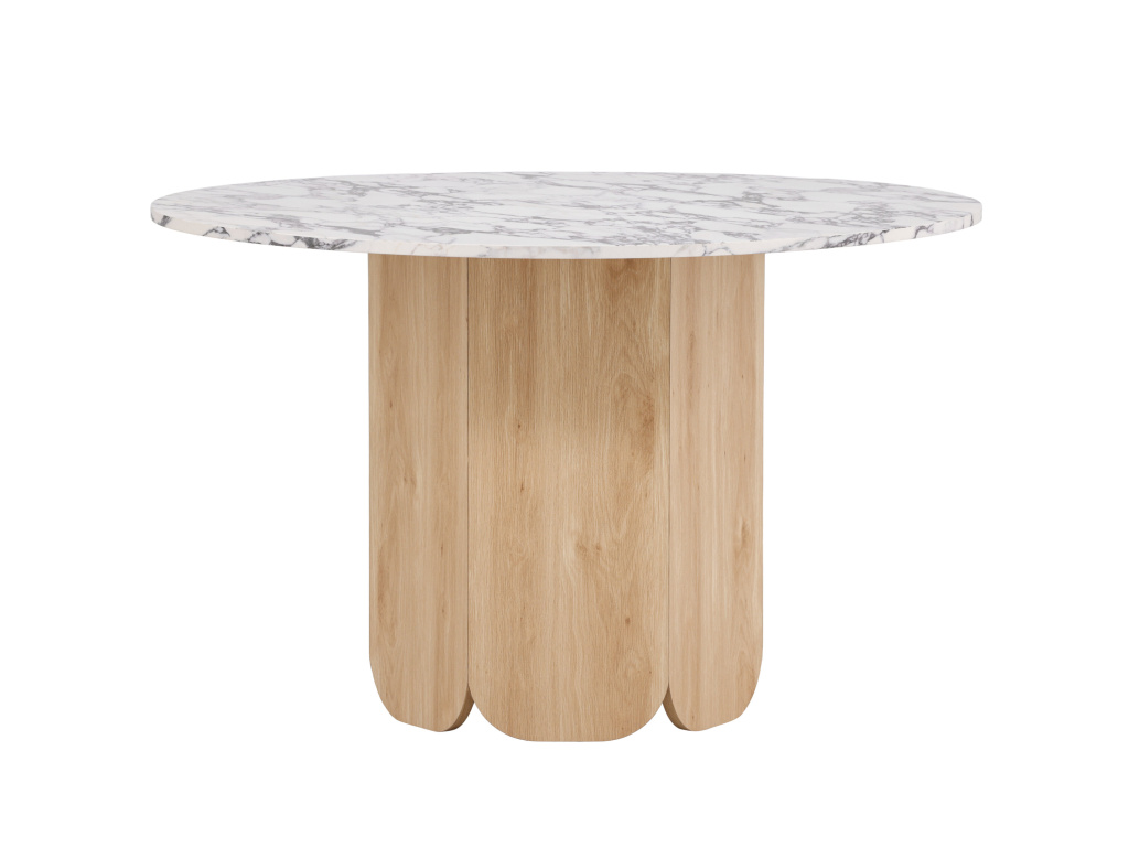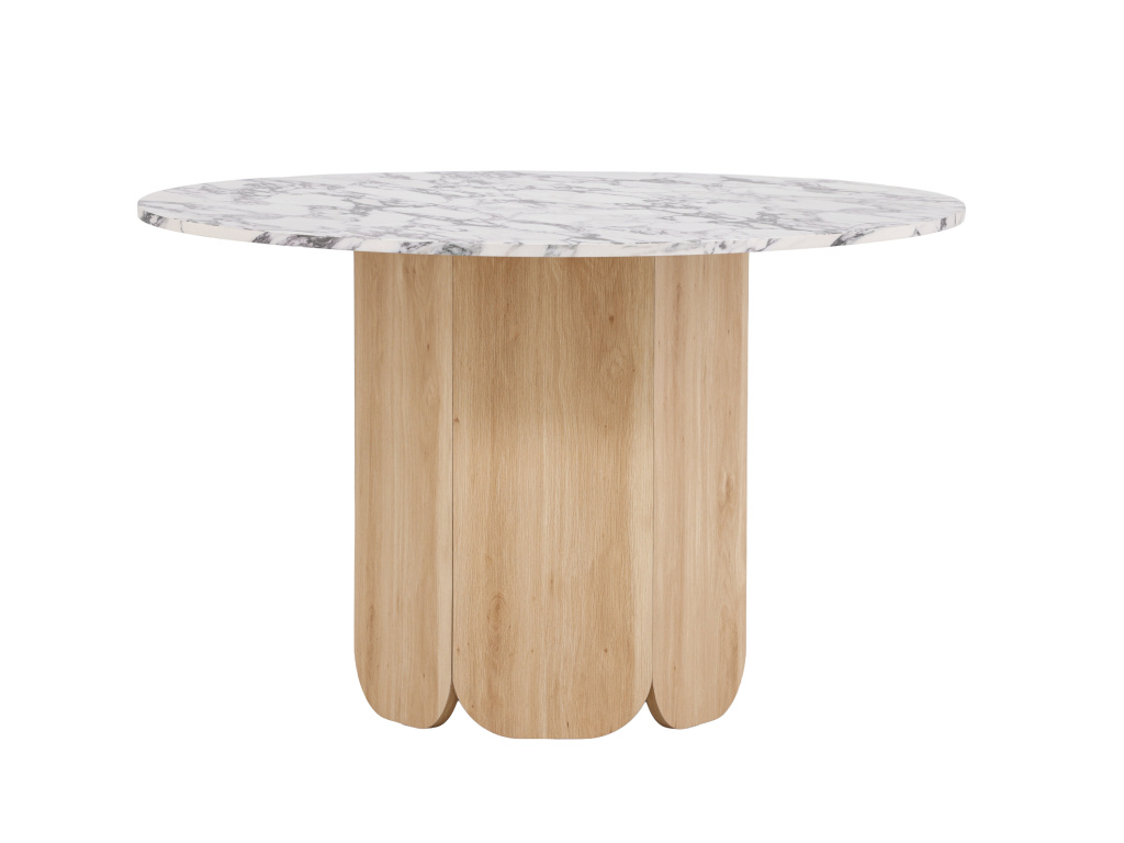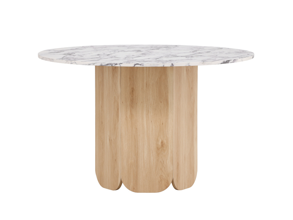 Objevte Teklu, jídelní stůl, který se odvažuje kombinovat materiály a výrazy a vytváří tak něco skutečně jedinečného. Díky charakteristické MDF základně a elegantní desce s kalacatovým vzhledem se Tekla stane vzrušujícím a jedinečným prvkem ve vašem interiéru. Kulatý tvar o průměru 120 cm je ideální pro menší jídelny, kde vytvoří příjemnou atmosféru a přirozené místo pro setkávání. Tekla se hodí jak do moderních domů, tak do kreativnějších nebo osobnějších prostor.