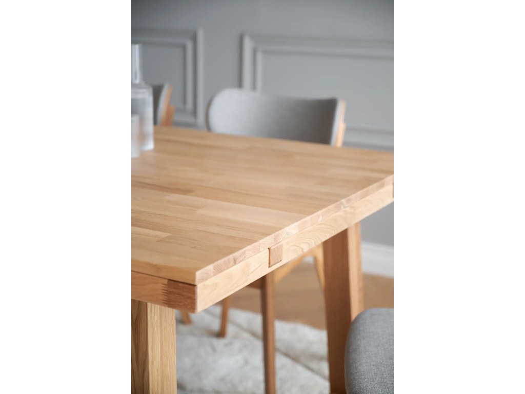 Vyrábí se z masivního lakovaného evropského dubu spojovaného prstovým spojem.