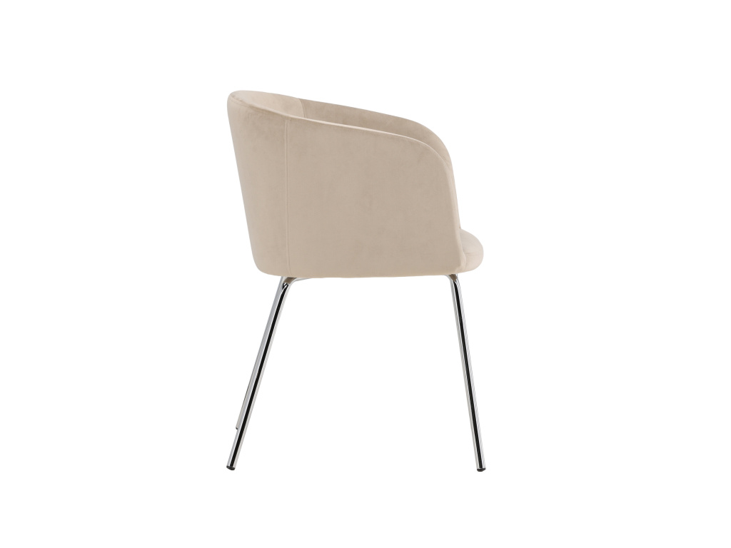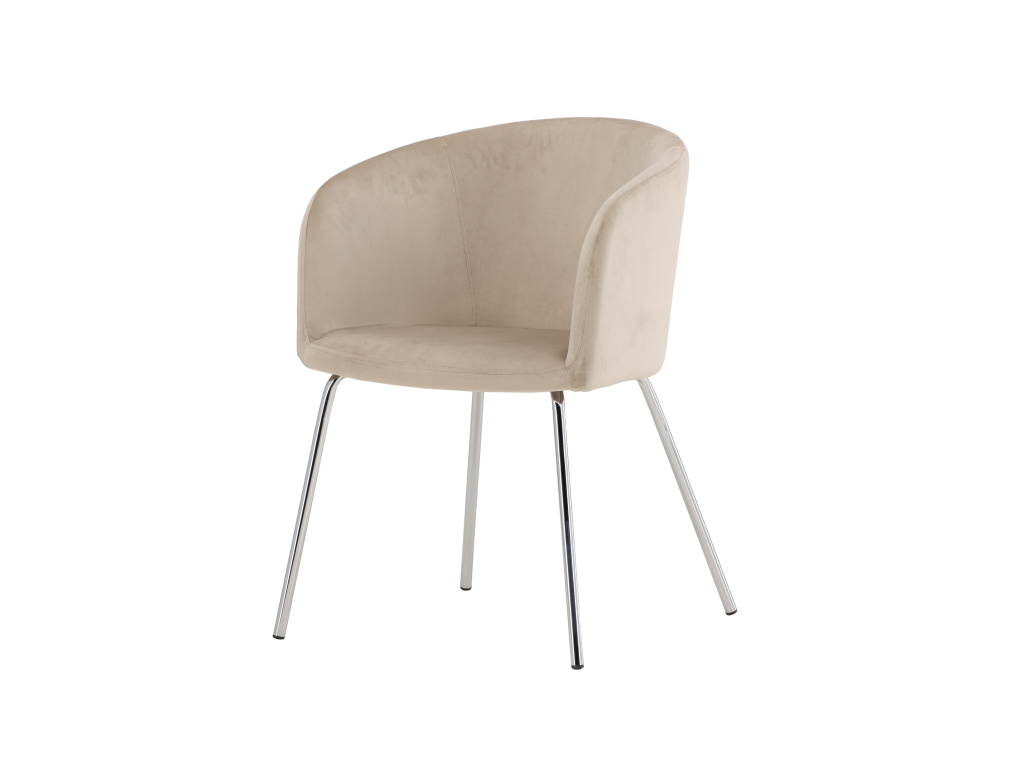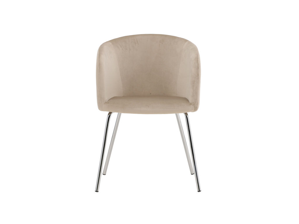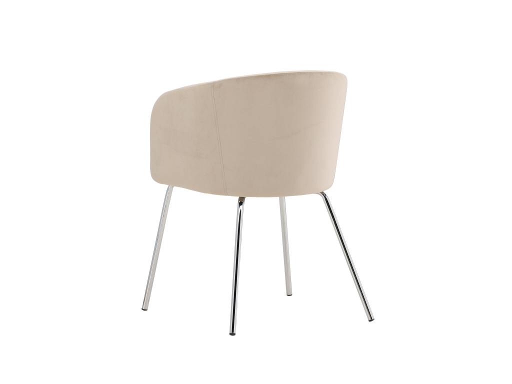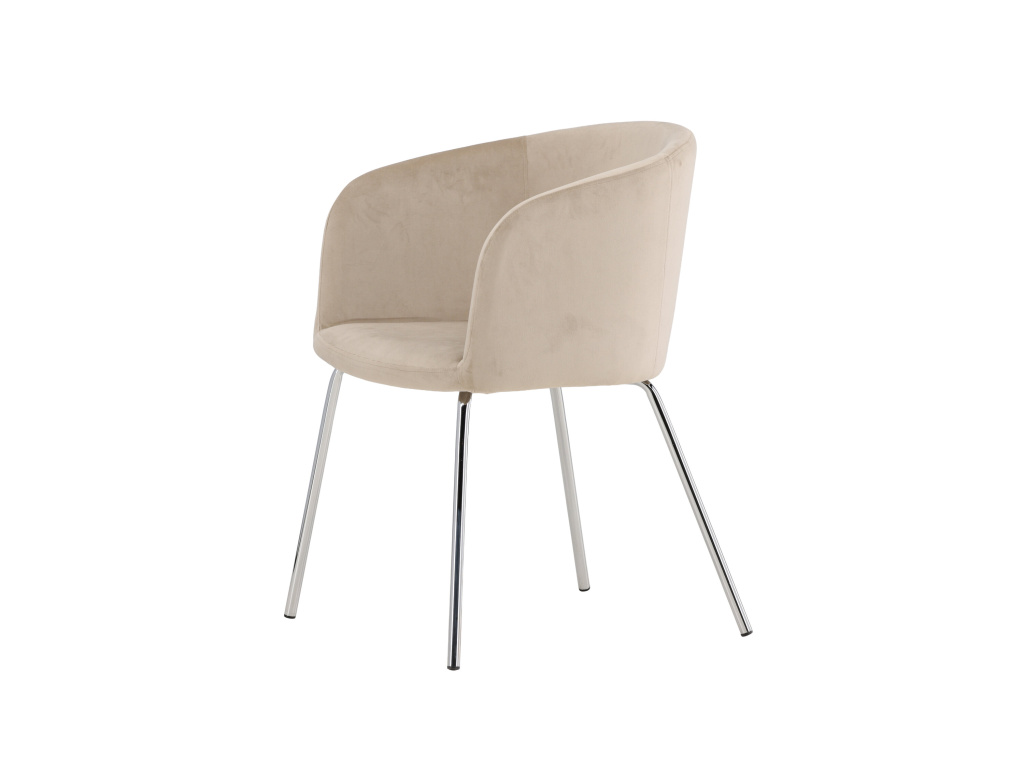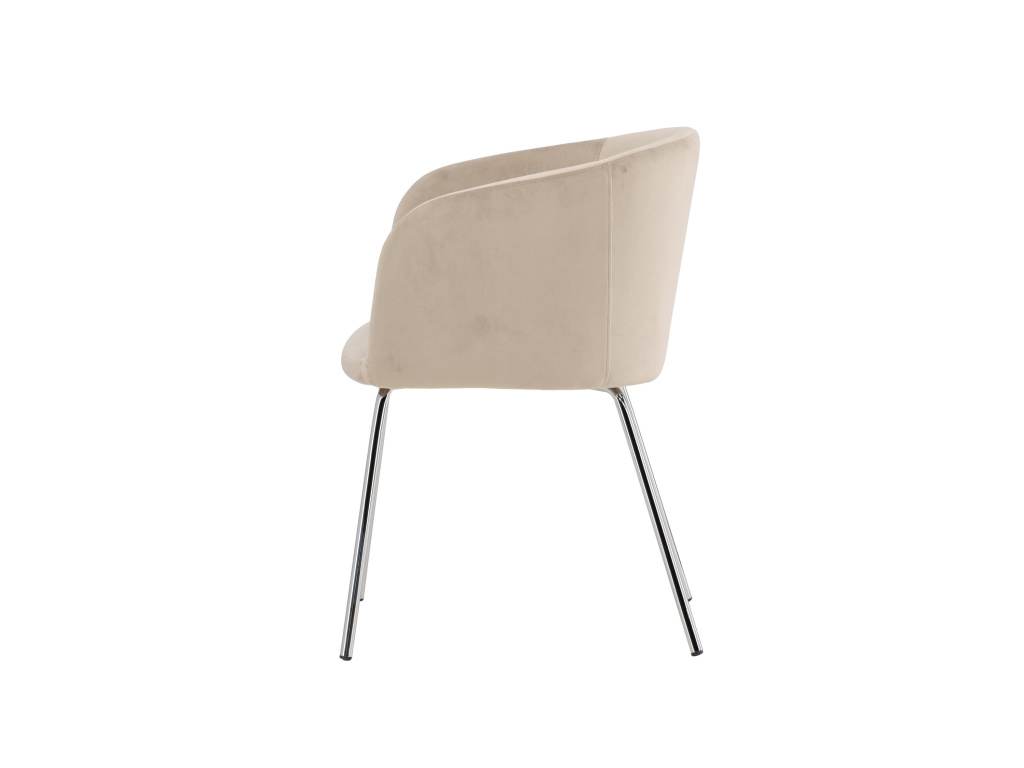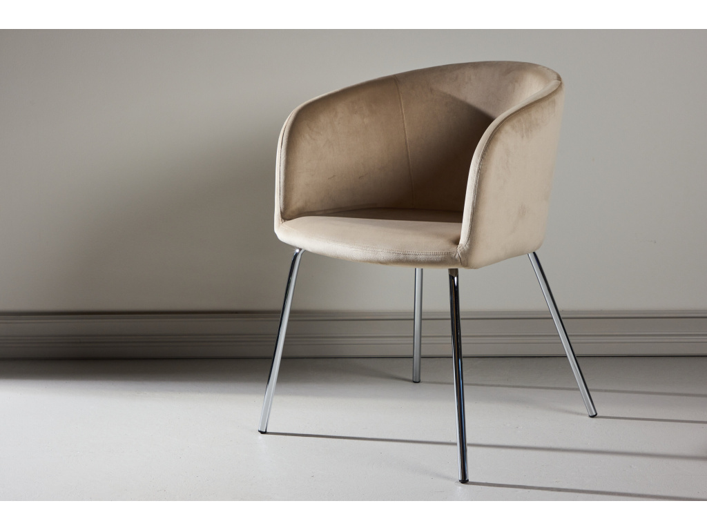 Berit je elegantní jídelní židle s nadčasovým designem. Židle má nohy z oceli ve stříbrné chromové barvě, které jí dodávají moderní a elegantní vzhled a zároveň nabízejí stabilitu a odolnost. Sedák je čalouněn měkkou béžovou sametovou látkou, která vypadá luxusně a je pohodlná na sezení. Díky svému prostornému a útulnému tvaru je Berit ideální pro dlouhé večeře, rozhovory a chvíle, kdy si chcete u stolu posedět.