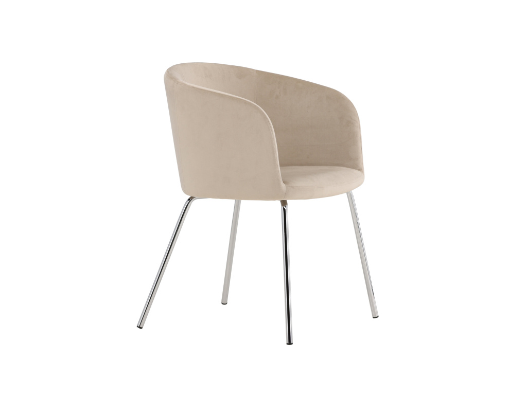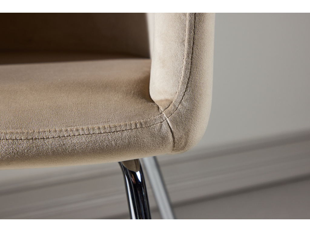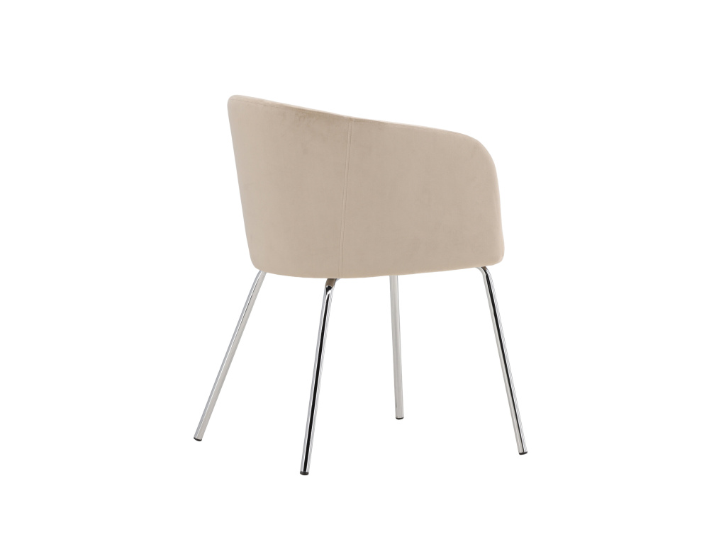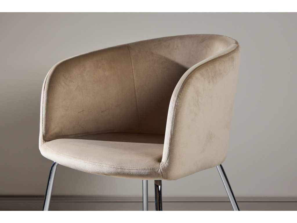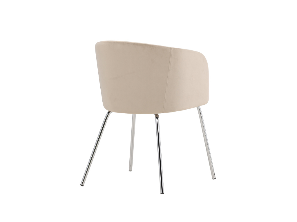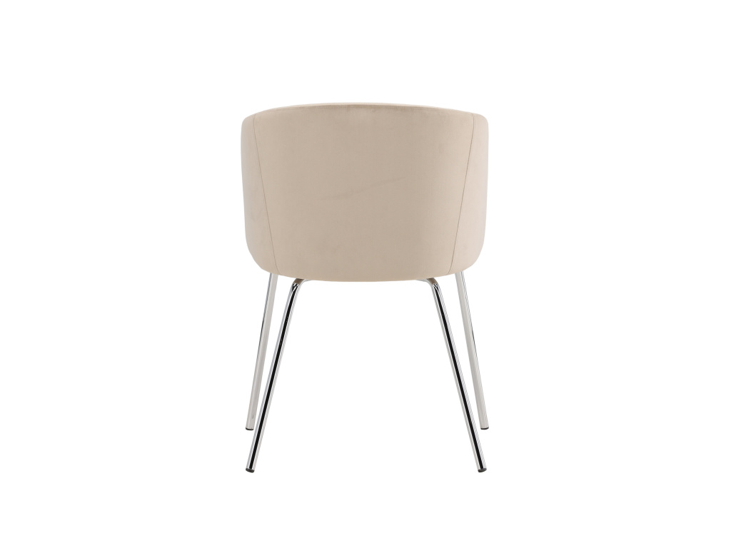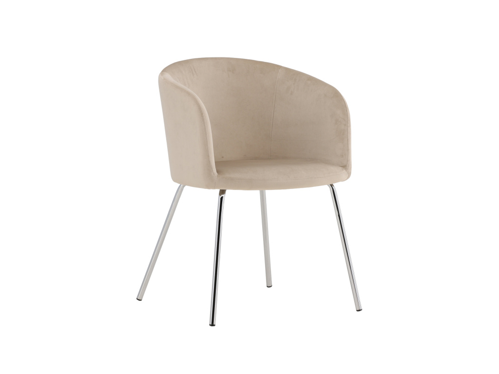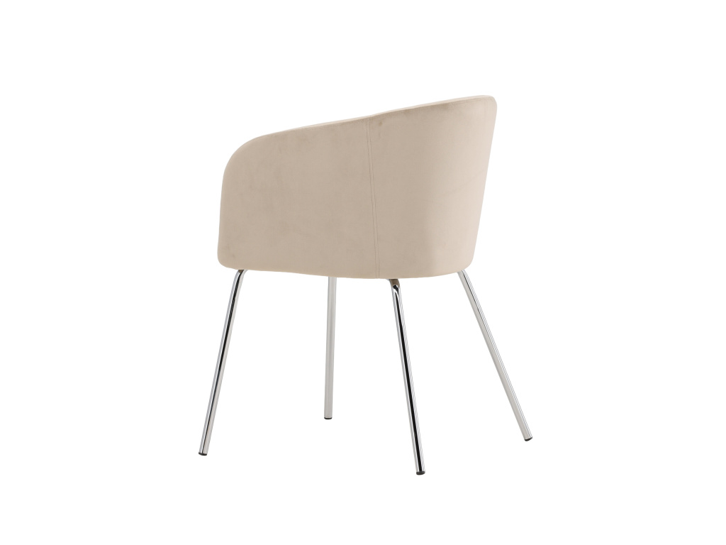 Berit je elegantní jídelní židle s nadčasovým designem. Židle má nohy z oceli ve stříbrné chromové barvě, které jí dodávají moderní a elegantní vzhled a zároveň nabízejí stabilitu a odolnost. Sedák je čalouněn měkkou béžovou sametovou látkou, která vypadá luxusně a je pohodlná na sezení. Díky svému prostornému a útulnému tvaru je Berit ideální pro dlouhé večeře, rozhovory a chvíle, kdy si chcete u stolu posedět.