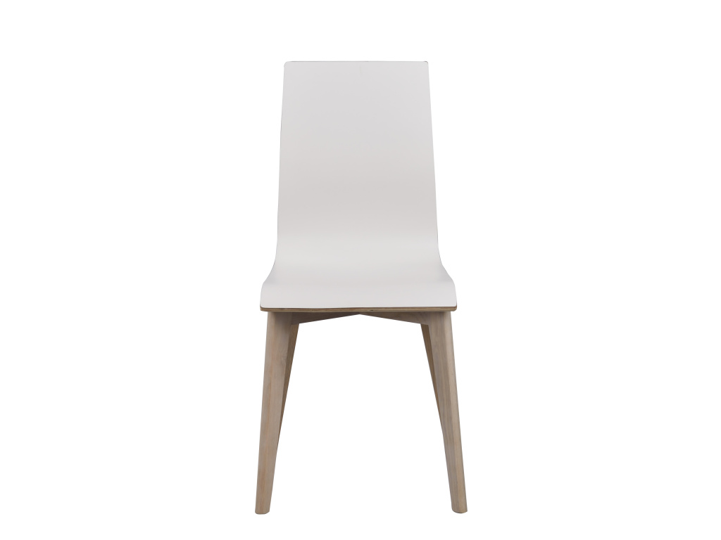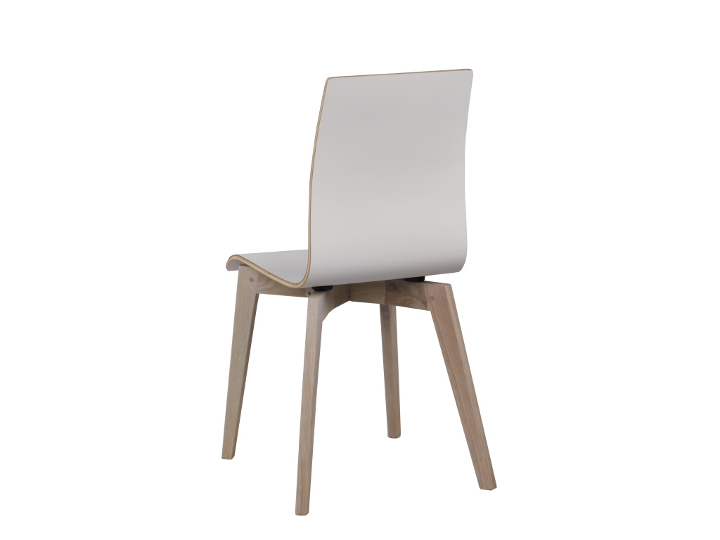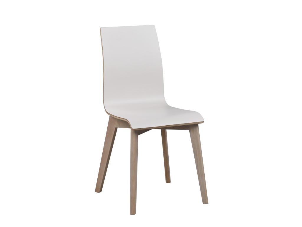 Gracy jídelní židle vyniká svým minimalistickým designem a bílým provedením, které se snadno hodí do každého moderního interiéru. Kombinace bílého laminátového sedáku a světle hnědě lakovaných dubových nohou dodává židli elegantní vzhled a robustnost.