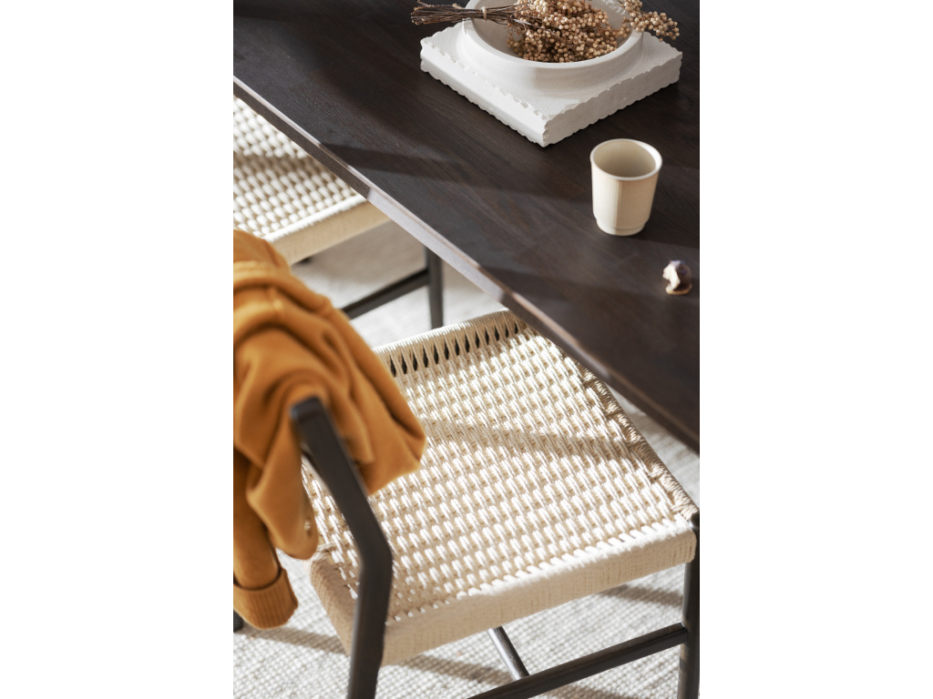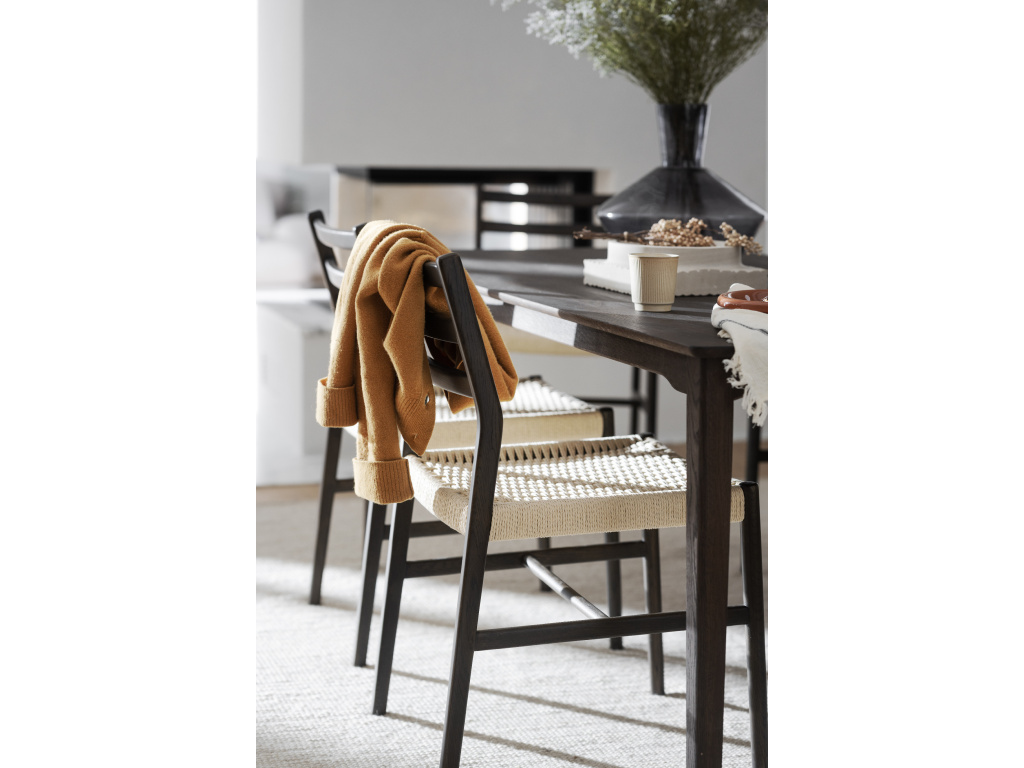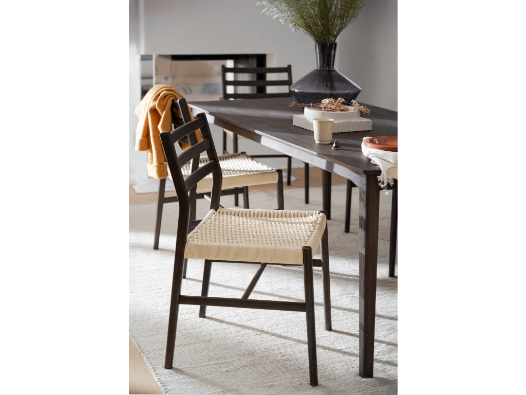 Pevný rám židle je vyroben z dubového dřeva s certifikací FSC, což zaručuje, že pochází z udržitelných lesů. Sedák z pletené papírové šňůry je nejen stylový, ale také pohodlný, s jemným přírodním vzhledem, který se dokonale hodí do moderních i tradičních interiérů.