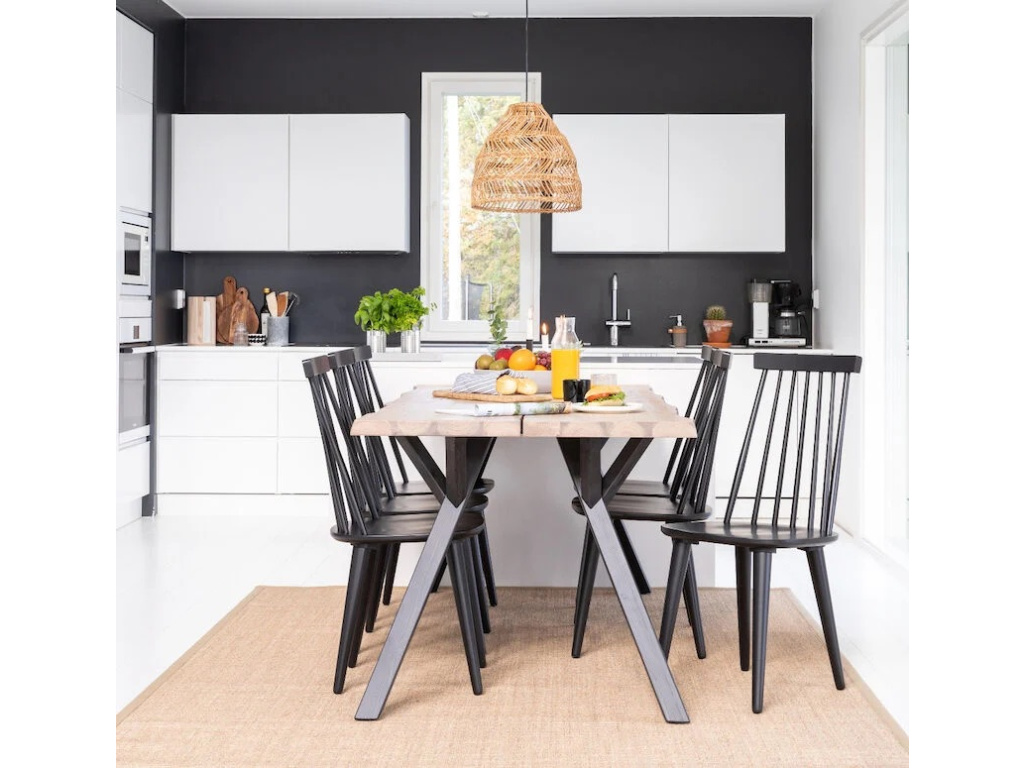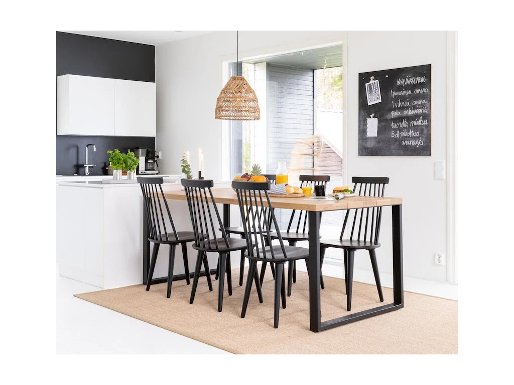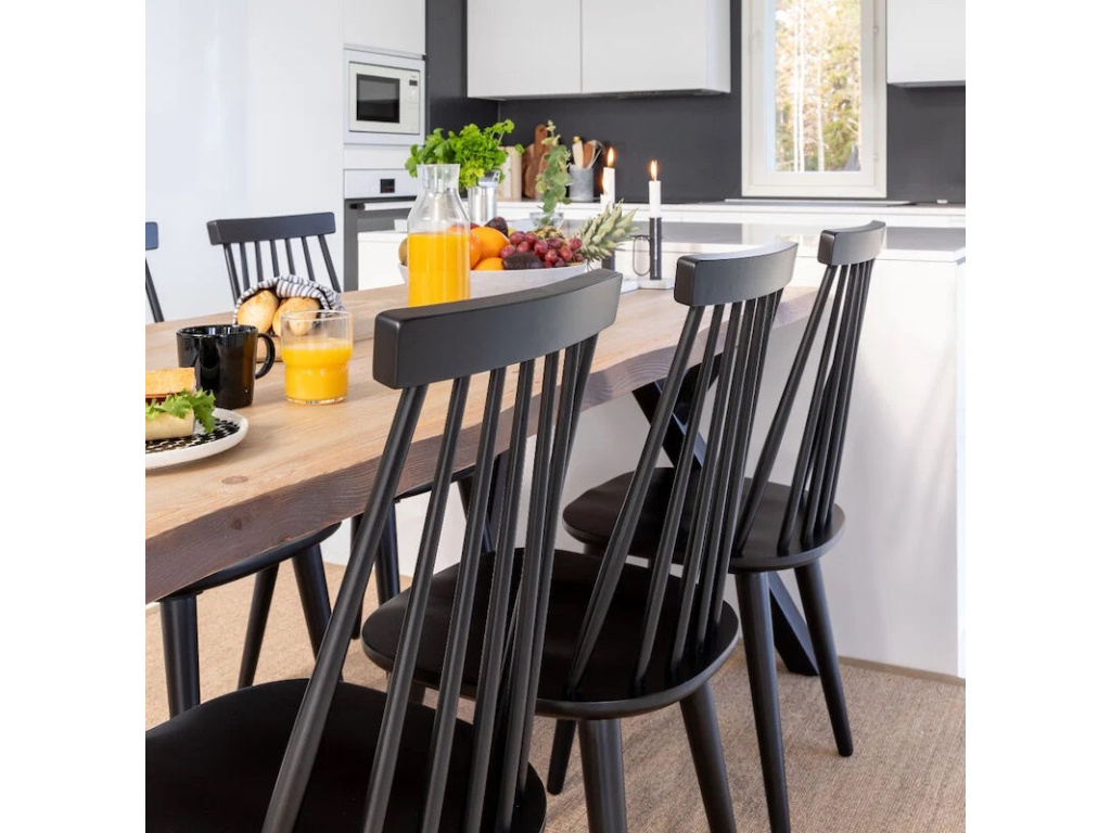 Jídelní židle Lotta je ukázkou jednoduchého, ale funkčního skandinávského designu. Černá barva spolu s hladkým povrchem z lakovaného kaučukového dřeva zajišťují elegantní vzhled, který snadno doplní různé styly interiérů – od minimalistických až po rustikální.