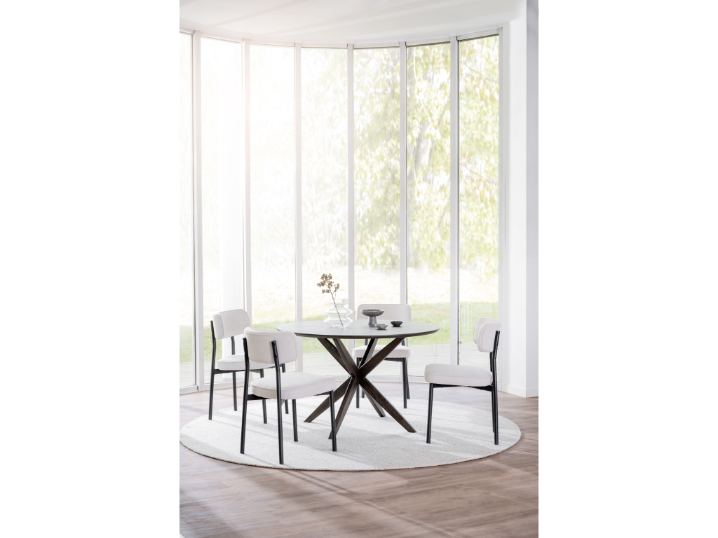 Vysoká odolnost Látka je testována na odolnost proti opotřebení (Martindale 100000 cyklů), což znamená, že si dlouho zachová svůj vzhled i při každodenním používání. Židle je nejen stylová, ale také praktická a odolná, navržená pro snadnou údržbu.