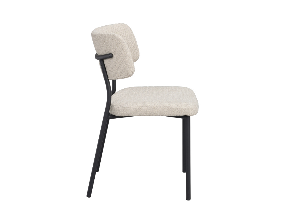 Ocelový rám s práškovým nástřikem v pískové struktuře, sedák a opěradlo z ohýbané překližky, čalouněné polyesterovou pěnou a 100% polyesterovou tkaninou.