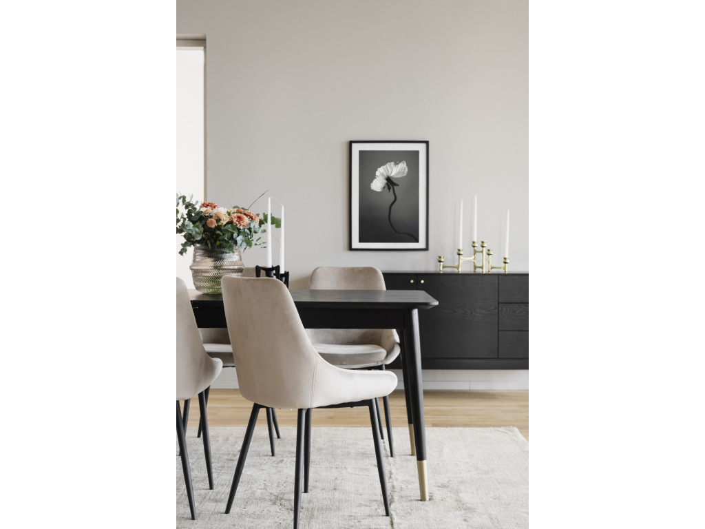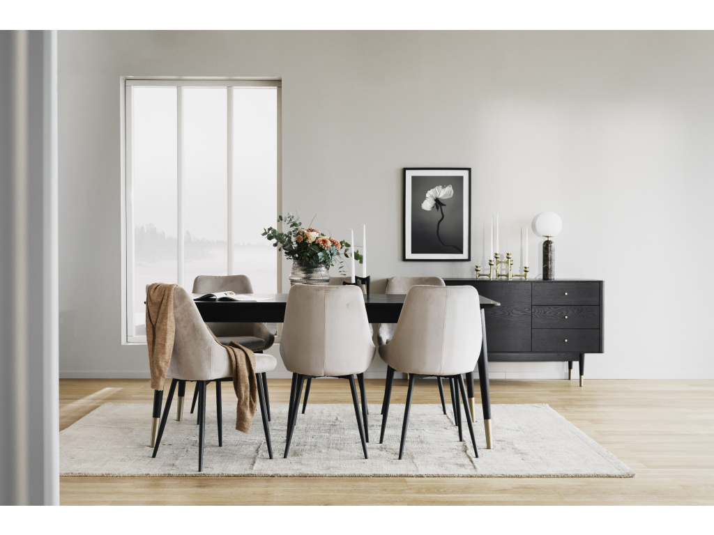 Elegantní skandinávský design Rowico Sierra židle přináší do vašeho interiéru čistý, moderní a minimalistický skandinávský styl. Čalounění v jemném béžovém odstínu dodává nádech elegance a přirozeného tepla, zatímco černé kovové nohy vytváří atraktivní kontrast, který snadno zapadne do jakéhokoliv interiéru.