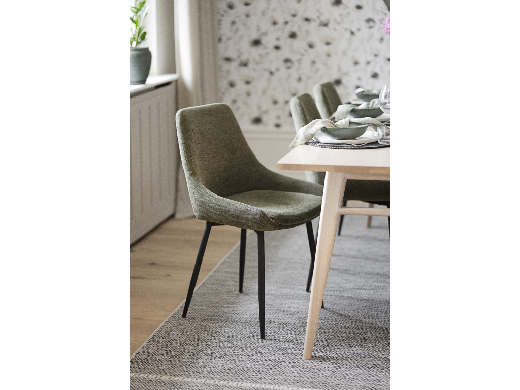 Elegantní skandinávský design Rowico Sierra židle přináší do vašeho interiéru čistý, moderní a minimalistický skandinávský styl. Čalounění v jemném zeleném odstínu dodává nádech elegance a přirozeného tepla, zatímco černé kovové nohy vytváří atraktivní kontrast, který snadno zapadne do jakéhokoliv interiéru.