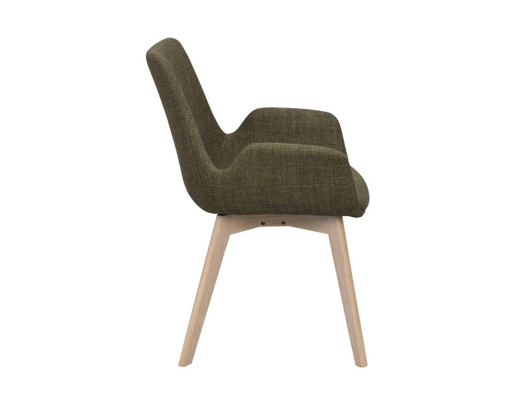 Židle s područkami Drimsdale spojuje nadčasový skandinávský design s maximálním komfortem. Čalouněná sedací část v zeleném odstínu je vyrobena z kvalitní textilie a poskytuje příjemný pocit pohodlí při každém posezení. Elegantní linie a světle hnědé nohy z masivního dubu dodávají židli moderní a sofistikovaný vzhled, který se hodí do jakéhokoliv interiéru.