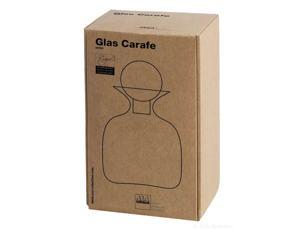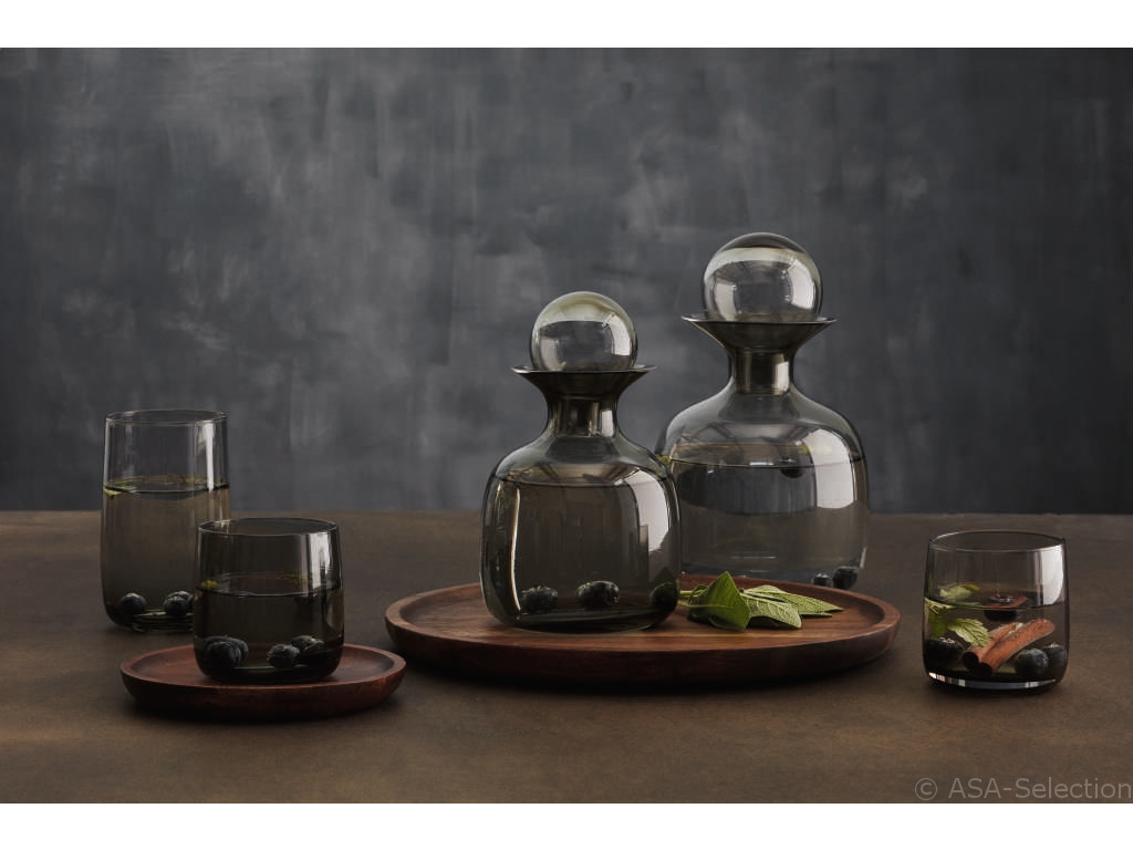 Skleněná karafa Asa Selection je k dispozici v šedé a jantarové barvě. K této karafě exitují sklenice ve stejných barvách.