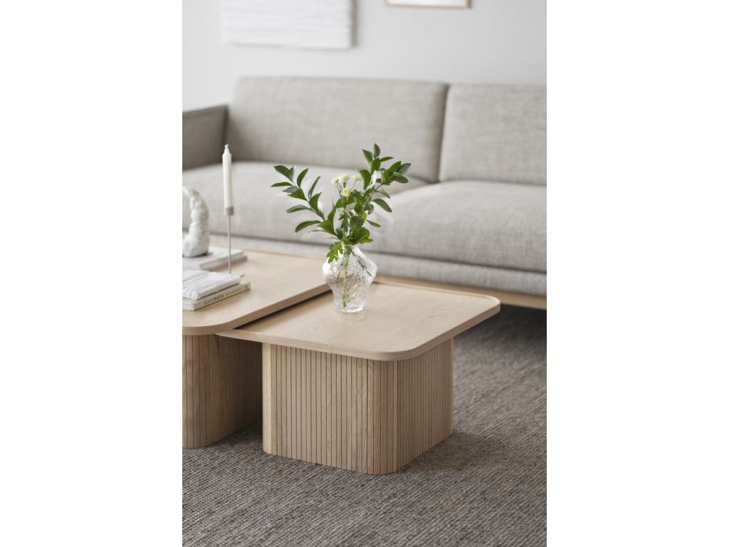 Elegantní design inspirovaný Skandinávií Sullivan konferenční stolek přináší do každé místnosti nádech skandinávské elegance. Jeho minimalistické linie a čisté tvary jsou doplněny zaoblenými rohy, které dodávají stolku jemný a sofistikovaný vzhled. Světle hnědý dubový odstín navozuje moderní atmosféru a snadno zapadne do různých stylů interiérů, od industriálních po minimalistické.