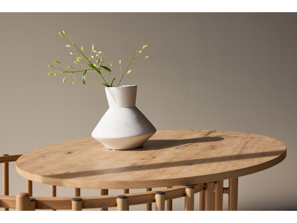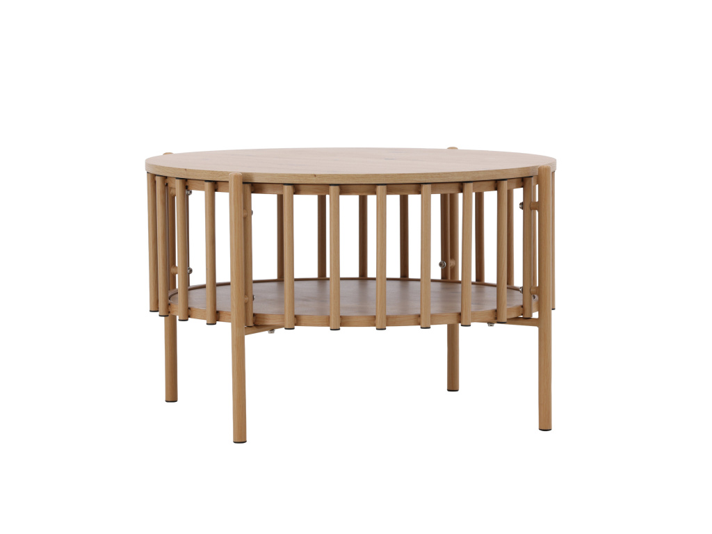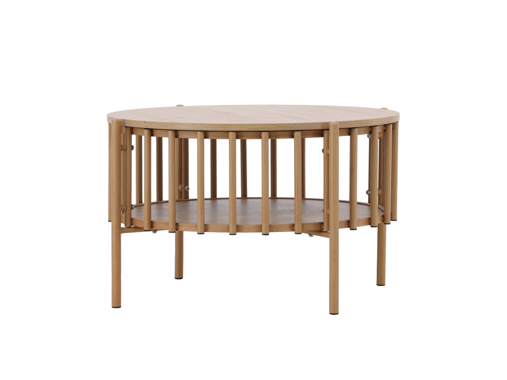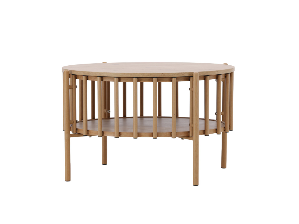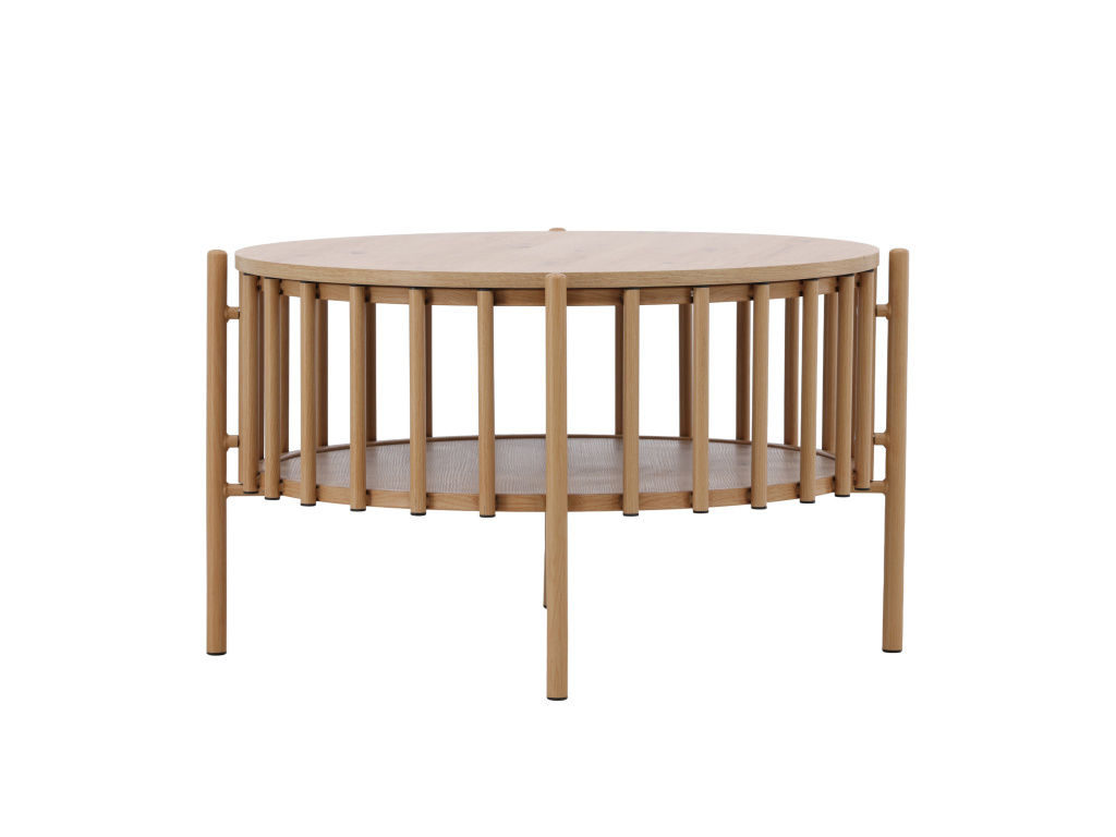 Rubbo je víc než jen konferenční stolek – je to vyjádření skandinávského designového cítění a přirozeného kouzla. Díky svému kulatému tvaru a žebrovanému designu vytváří Rubbo v místnosti harmonickou a živou atmosféru. Svislé lamely po stranách stolu dodávají dynamickou strukturu a jedinečný designový jazyk, který přitahuje pozornost, aniž by zahlcoval prostor. Rubbo, vyrobený s teplým, přírodním vzhledem dřeva, se bez problémů hodí do většiny interiérových stylů. Čtyři nohy jsou dovedně integrovány do designu a decentně, ale promyšleně kopírují tvar stolu, čímž mu dodávají vyváženou siluetu. Rubbo je perfektní volbou pro každého, kdo hledá elegantní a charakteristický konferenční stolek s něčím navíc.