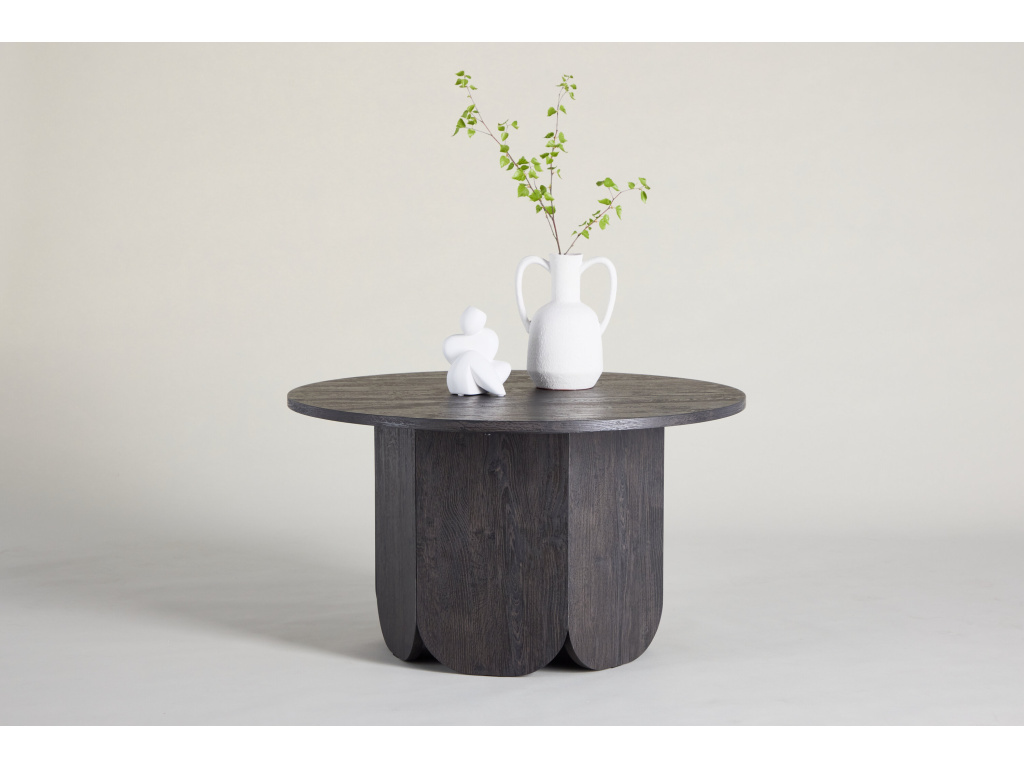 Konferenční stolek Tekla je elegantní a všestranný kus nábytku, který kombinuje jemné tvary s expresivním a moderním vzhledem. Kulatá deska stolu v tmavě černé barvě působí elegantním a sofistikovaným dojmem, který pozvedne celkový dojem z vašeho obývacího pokoje. Jako součást série stolů v různých velikostech se Tekla snadno přizpůsobí proporcím a potřebám místnosti. Zaoblený tvar přispívá k jemnému a harmonickému výrazu, zatímco černý tón dodává grafickou hloubku a osobitý vzhled. Vyvážený design Tekly usnadňuje umístění v prostorných obytných prostorech i v kompaktnějších prostorách – ideální pro ty, kteří hledají styl i funkčnost v jednom stolku.