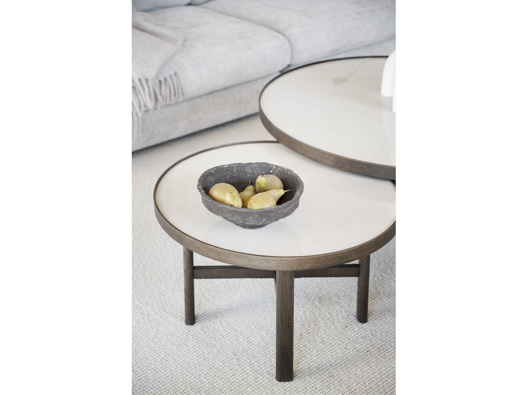 Marsden konferenční stolek přináší nadčasový skandinávský design do vašeho obývacího pokoje. Díky kombinaci béžové keramické desky a nohou z hnědě lakovaného dubu vytváří jemný kontrast přírodních a moderních materiálů, který zaujme na první pohled.