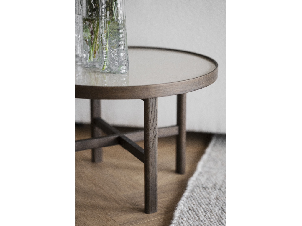 Kulatý konferenční stolek Rowico Home MARSDEN 60 cm | Běžový/Hnědý