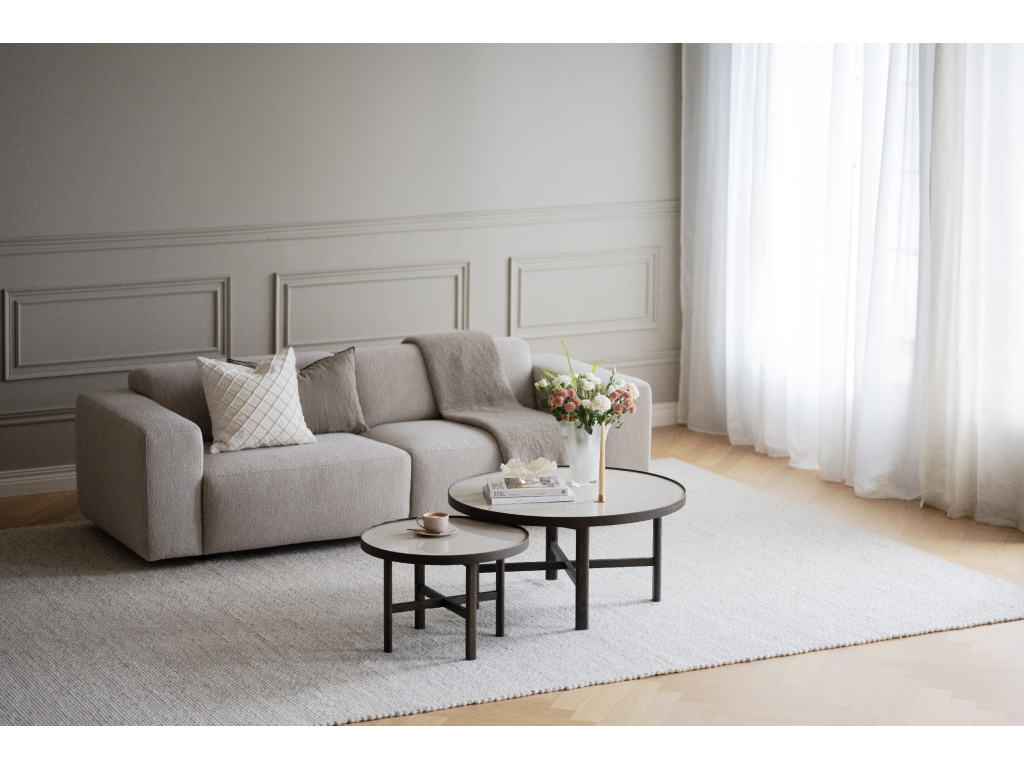Marsden stolek s průměrem 60 cm a výškou 40 cm se hodí jak do menších, tak prostorných interiérů. Jeho minimalistický vzhled a přírodní materiály skvěle doplňují současné trendy v bytovém designu, a to jak v obývacím pokoji, tak ve společenských prostorech.