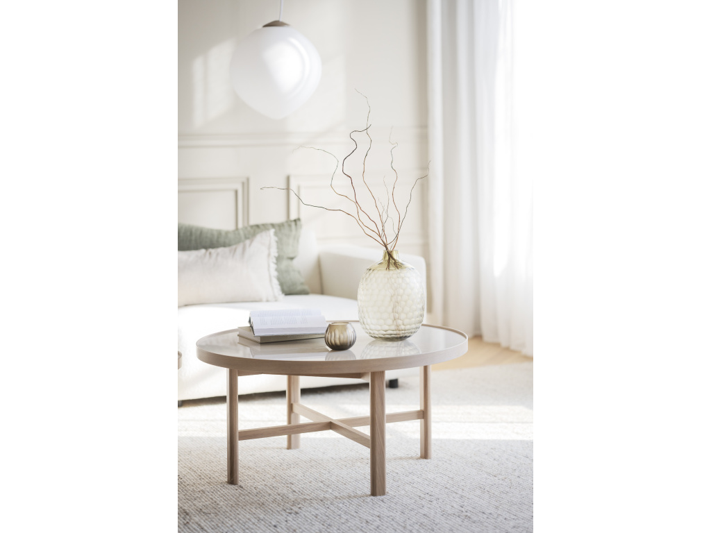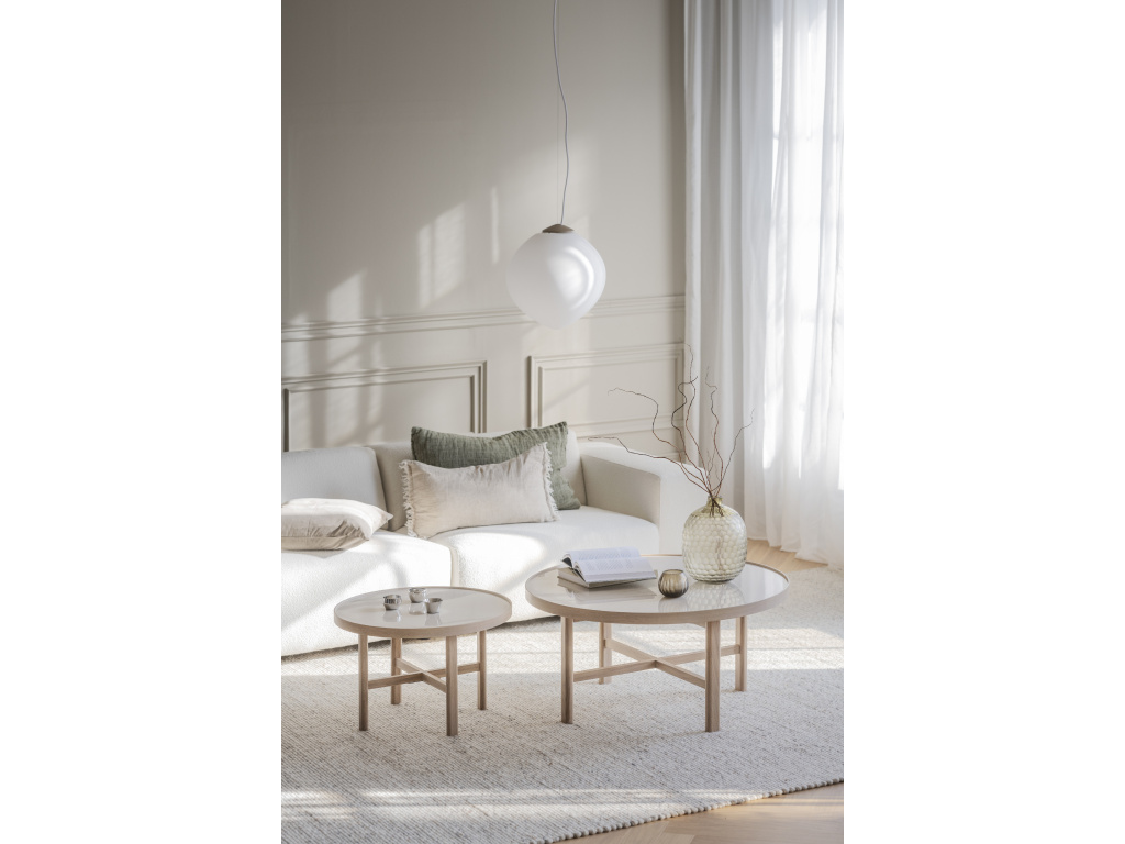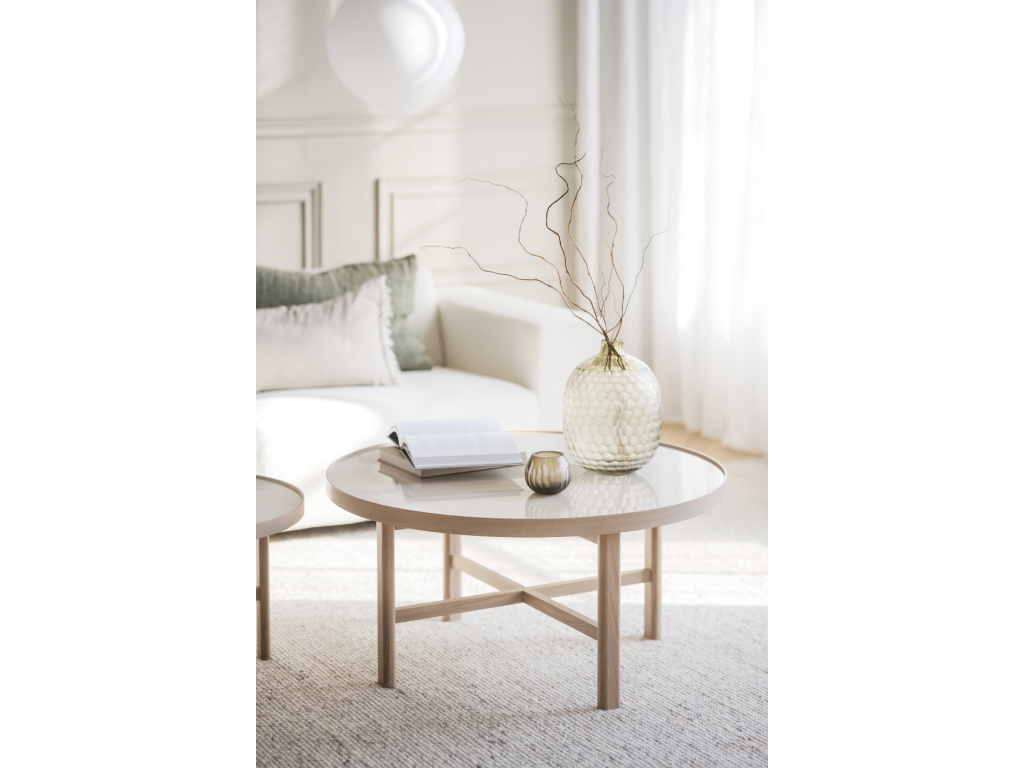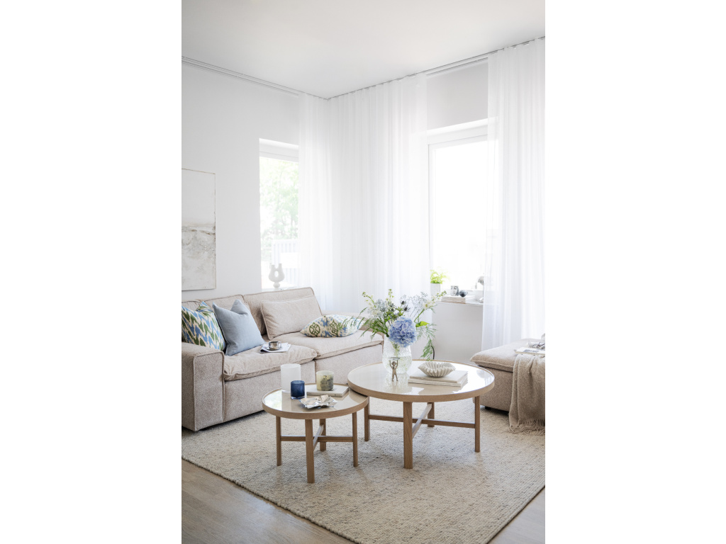 Marsden stolek s průměrem 90 cm a výškou 45 cm se hodí jak do menších, tak prostorných interiérů. Jeho minimalistický vzhled a přírodní materiály skvěle doplňují současné trendy v bytovém designu, a to jak v obývacím pokoji, tak ve společenských prostorech.