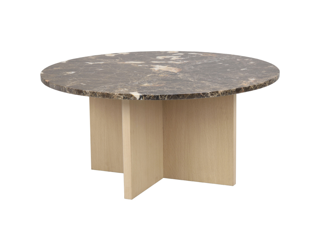 Mramorový kulatý konferenční stolek Rowico Home BROOKSVILLE 90 cm | Hnědý/Světle hnědý