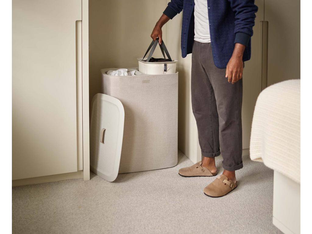 Jste připraveni zahnat blues v den praní? Seznamte se s Totou, naším chytrým a stylovým košem na prádlo. Tota, navržená se dvěma přihrádkami a odnímatelnými, snadno přenosnými taškami, snižuje čas a energii potřebnou k oddělení oblečení a přenášení těžkých nákladů do pračky. Skvěle vypadá také v ložnici, koupelně nebo technické místnosti.