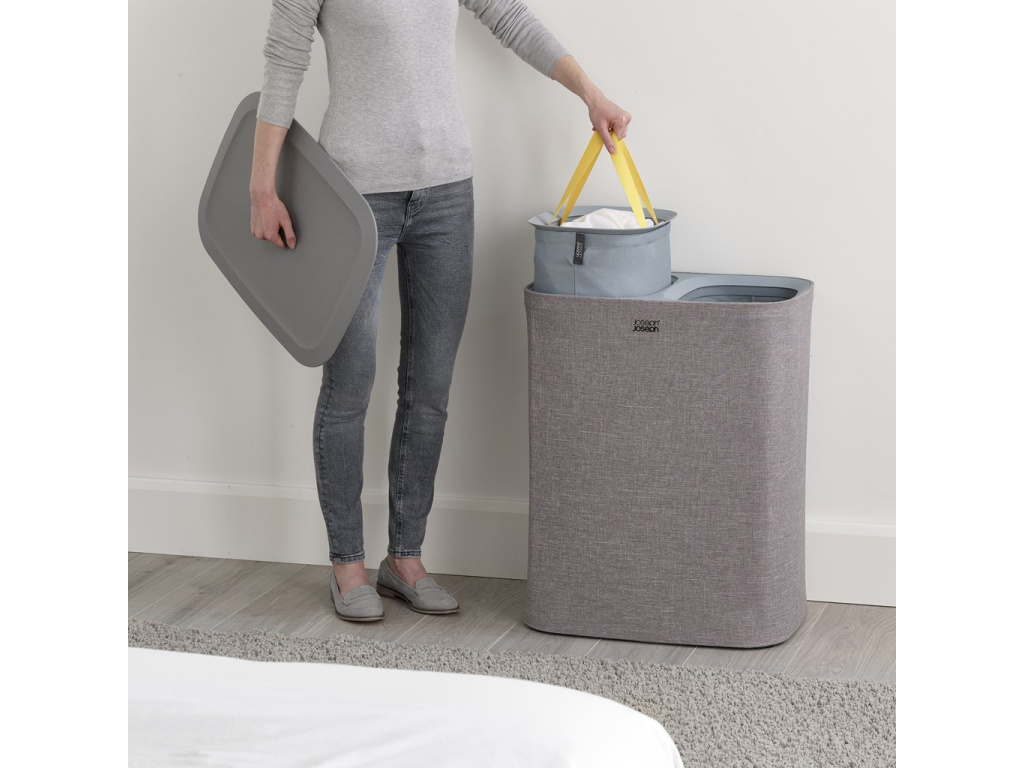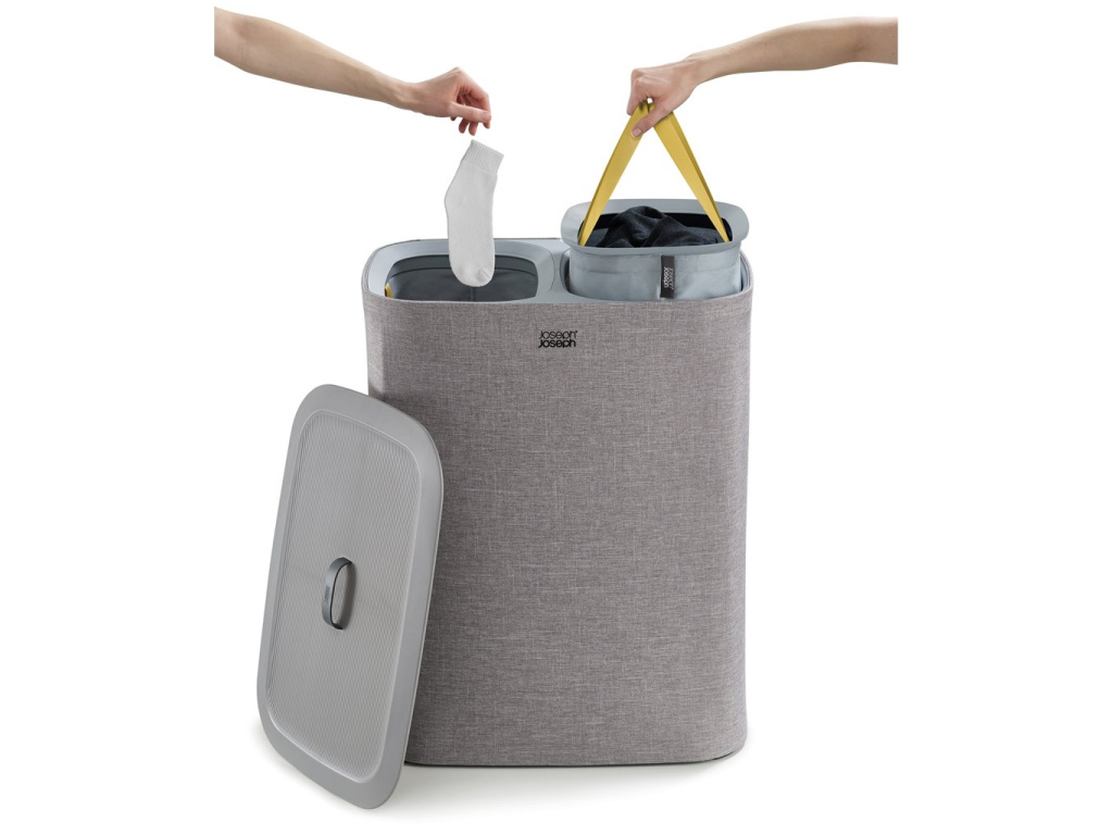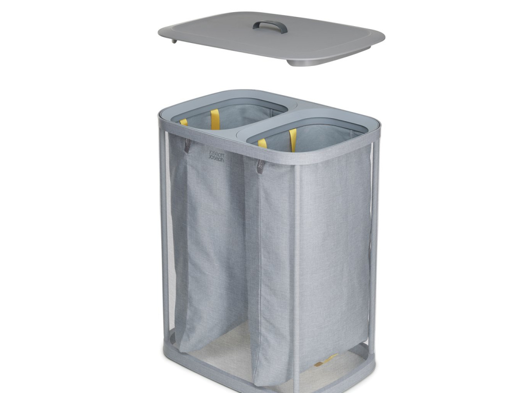 Koš na prádlo JOSEPH JOSEPH Tota umožňuje předběžné třídění prádla do dvou oddělení objemem 45L.
