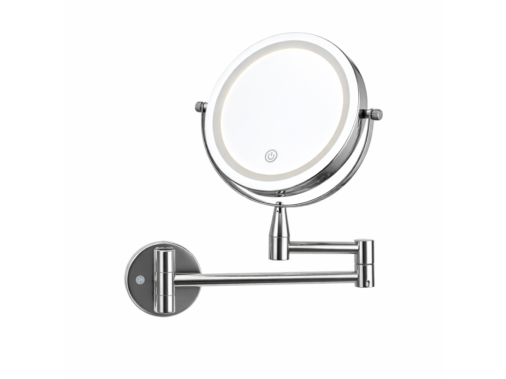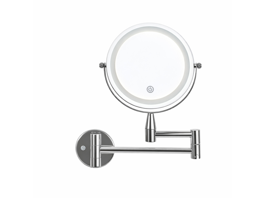 Zrcadlo je vyrobeno z kovu s elegantním chromovým povrchem, který mu dodává odolnost a styl. Jeho moderní a kompaktní design se snadno začlení do každého stylu koupelny.