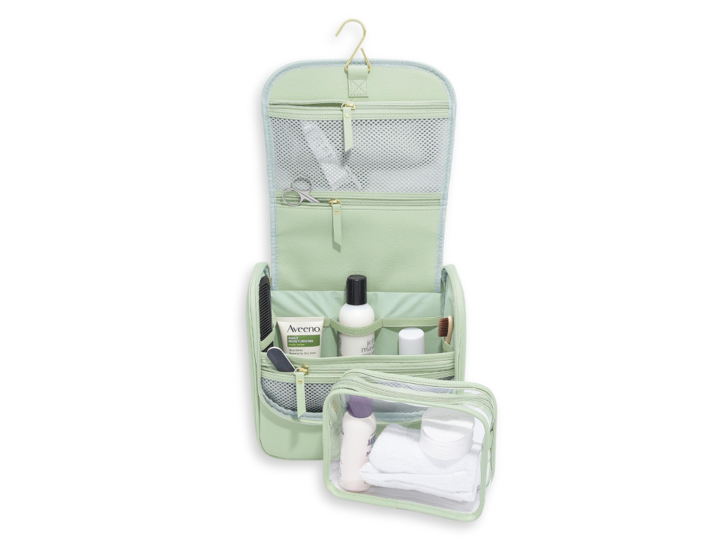 Dostatečně velká, aby se do ní vešly šampony a kondicionéry plné velikosti, a zakončená závěsným háčkem pro snadný přístup. V mnoha vystlaných přihrádkách této stylové tašky je spousta místa pro toaletní potřeby, kosmetiku, hřebeny a kartáče.
