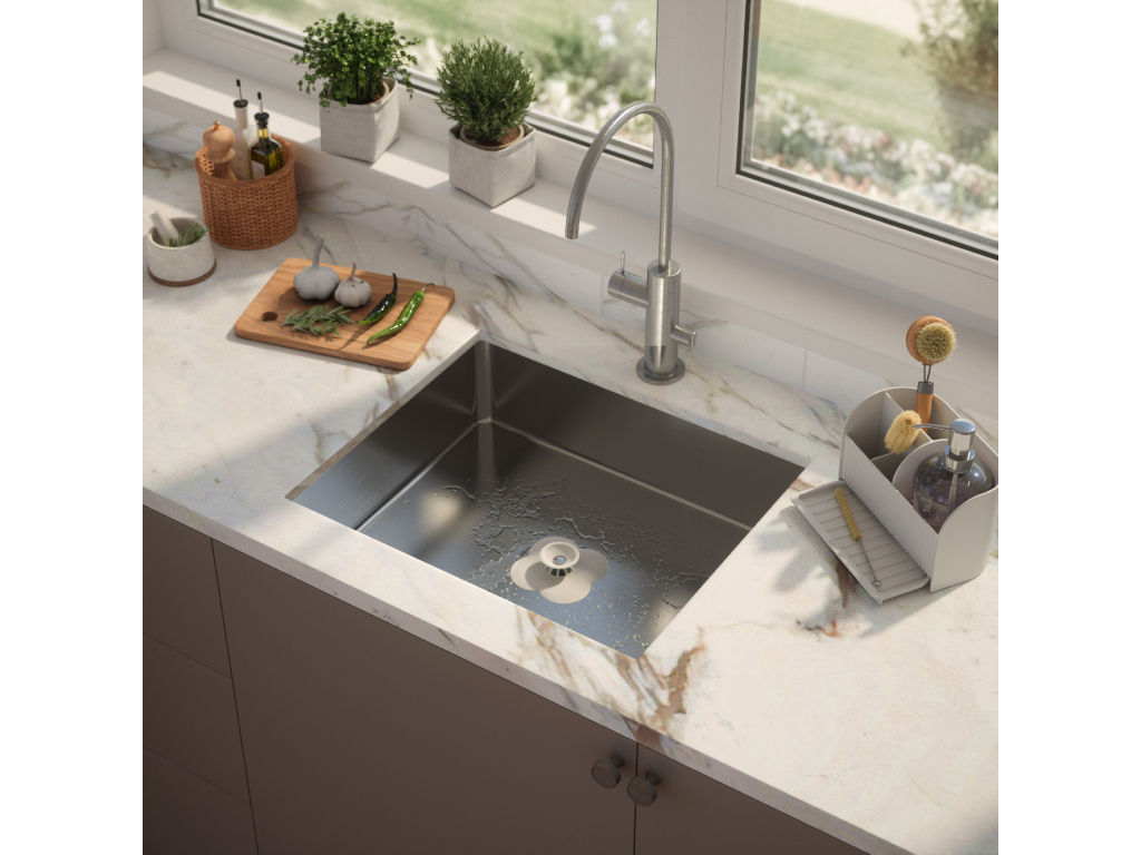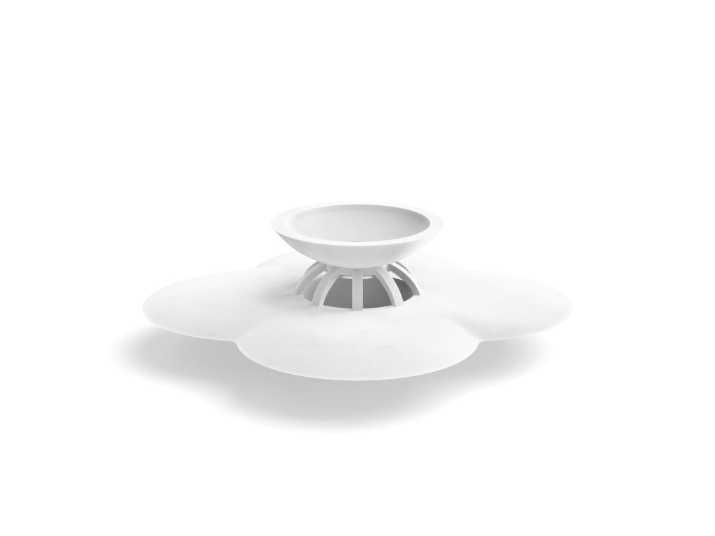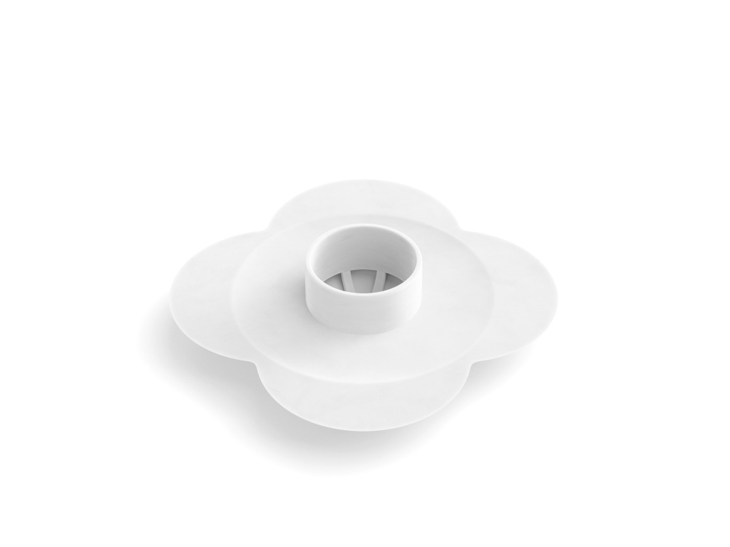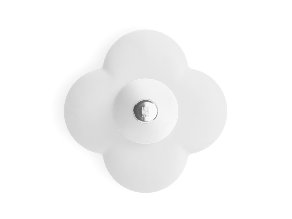 Stiskněte prostřední tlačítko Bloom pro uvolnění toku vody a použijte jej jako lapač vlasů, zatlačte na ohnuté okraje pro uzavření ventilu a použijte jej jako zátku odtoku.