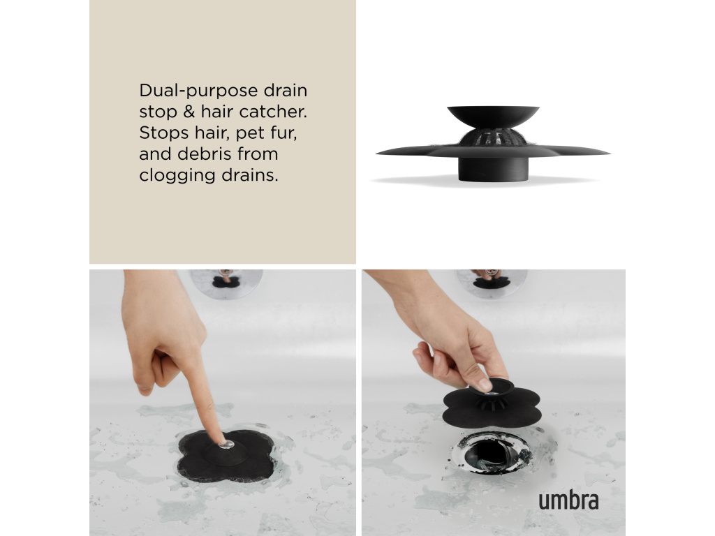 Udržujte své odpady průtokové a koupelnu bez starostí s lapačem Bloom Drain Stop & Hair Catcher. Díky hravému tvaru květiny kombinuje zátku vany a lapač vlasů v jednom praktickém nástroji. Jednoduše ji vložte do standardního odtoku vany nebo sprchy a poté stiskněte střed pro přepínání mezi zachycováním vlasů a utěsněním vody.