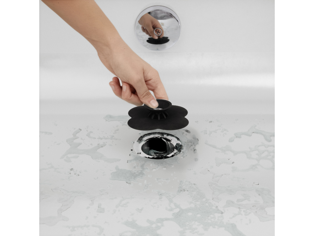 Flex se snadno instaluje do jakékoli vany; jednoduše jej umístěte nad odtok vany a je připraven; hodí se do většiny standardních odtoků van a sprch; k vyčištění stačí otřít nebo opláchnout jemným mýdlem